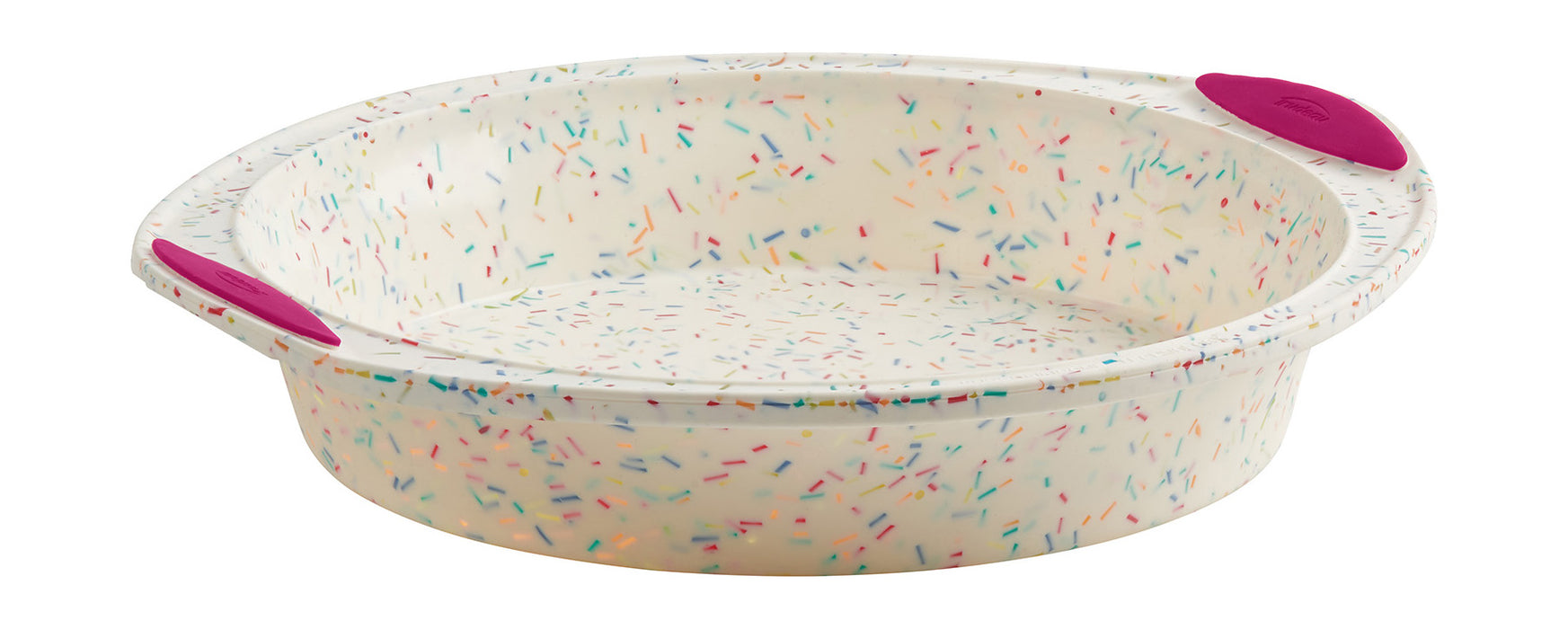 Create perfect 9" round cakes with the Trudeau Confetti Structure Silicone Round Cake Pan. Made from silicone, the pan cooks evenly and with easy release. The integrated steel structure provides secure handling. The pan is oven safe, microwave safe and freezer safe. It is also easy to wash in the dishwasher. Whether you're preparing a simple round cake or a cake with many layers, your creation will be a masterpiece with this pan!