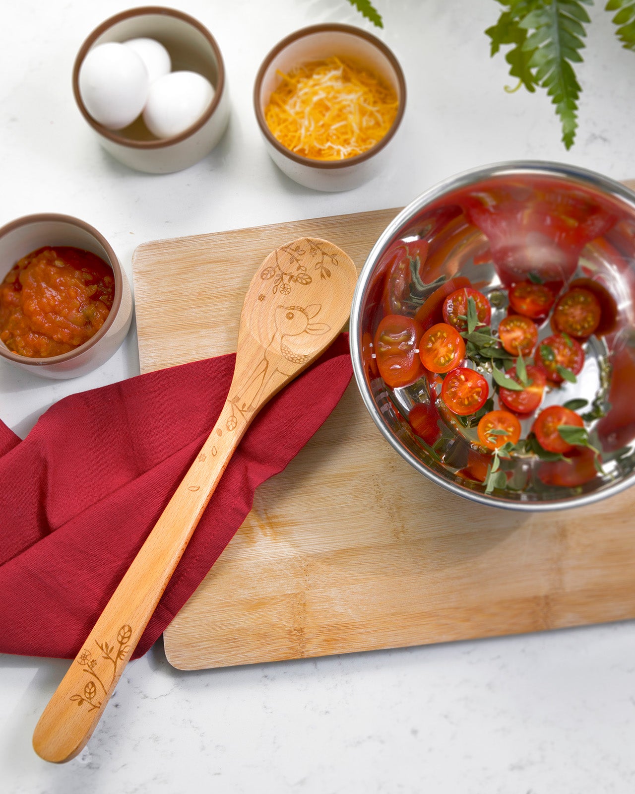 - ATTRACTIVE LASER ETCHED DESIGN: The beautiful wooden spoon for cooking is permanently laser etched to embrace a Woodland Collection deer design that makes this kitchen item both cute and functional to spruce up your countertop.