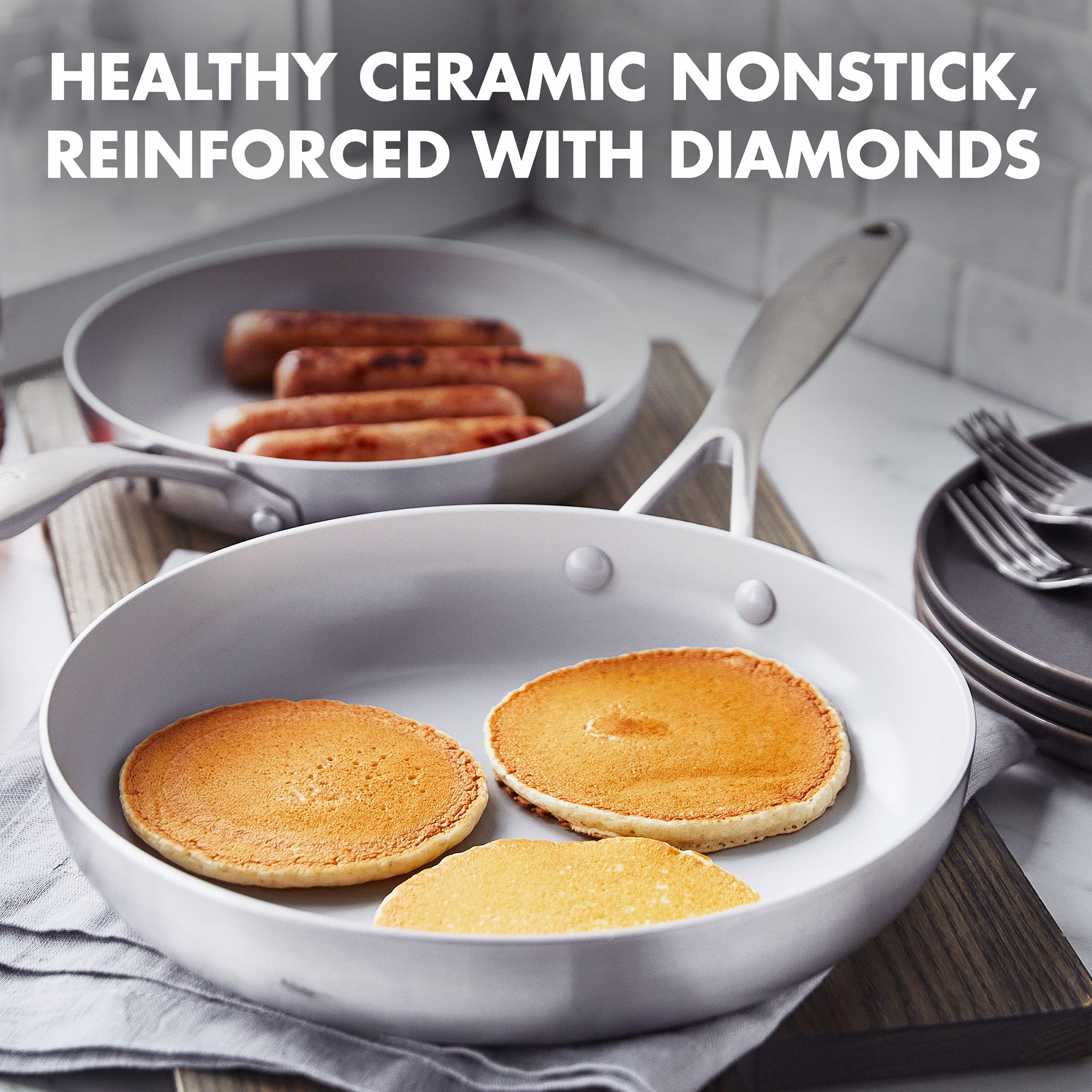 - Infused with diamonds: GreenPan’s Thermolon™ Minerals Pro healthy ceramic nonstick coating is free of PFAS, PFOA, lead, and cadmium, so it will never release toxic fumes