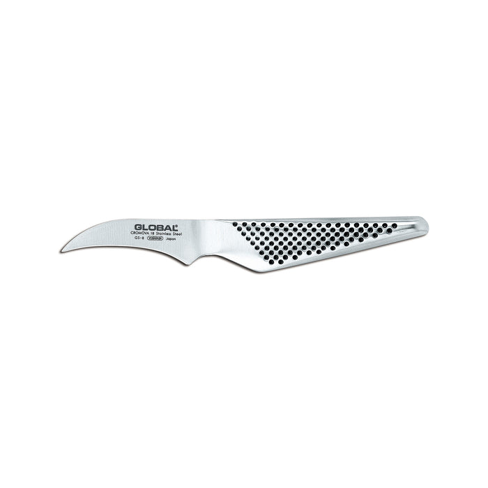 The Global GS-8 2.75" Bird's Beak Peeling Knife is an essential tool for intricate kitchen tasks, designed specifically for peeling and shaping fruits and vegetables with precision. Made in Japan from Cromova 18 stainless steel, this knife provides superior sharpness, rust resistance, and edge retention. Its unique bird’s beak blade is curved to allow for detailed cuts and garnishing work, giving you total control over delicate tasks. The ergonomic stainless steel handle offers a secure and comfortable grip, making it easy to maneuver the knife during use. Perfect for any home or professional kitchen, this compact knife combines functionality with the signature sleek style of Global.