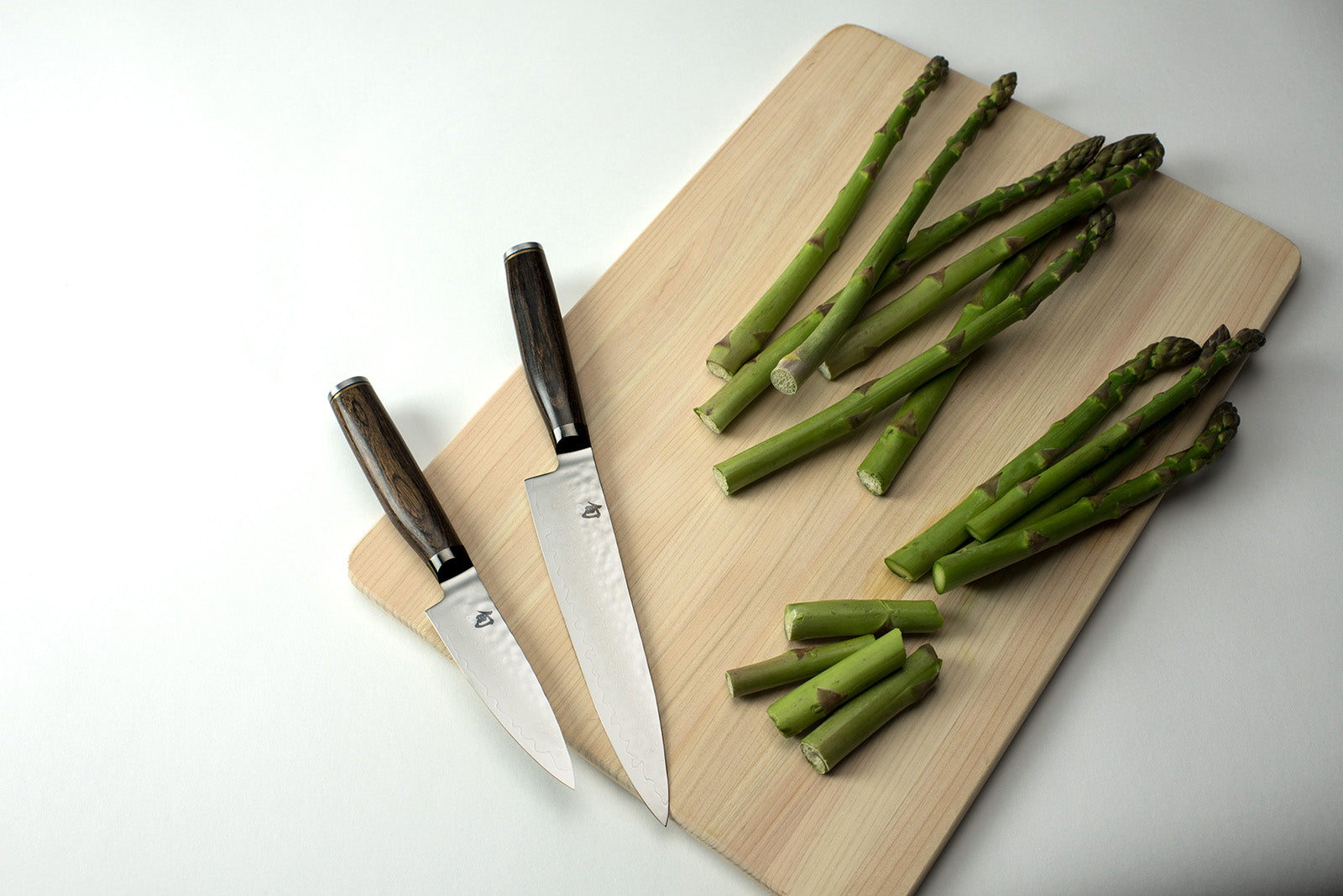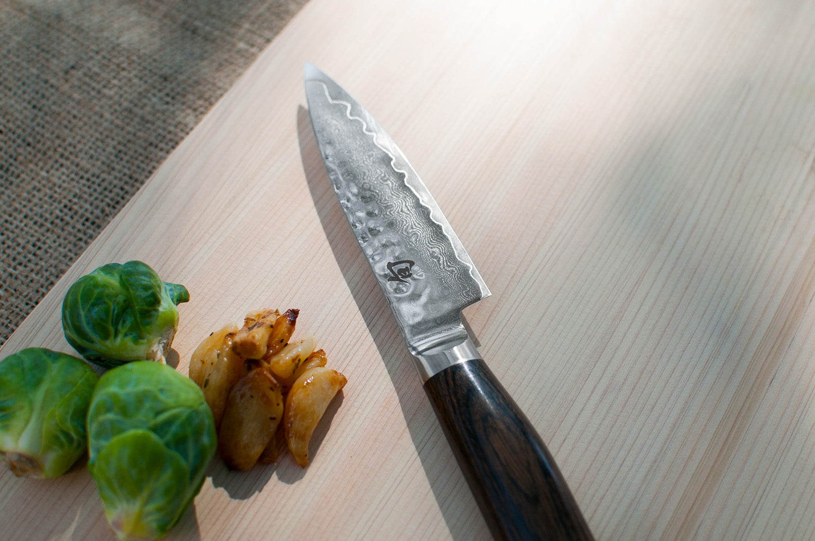 The Shun Premier Paring knife is a kitchen essential. In a way, you can think of it as the mini version of the Chef's knife because, like the Chef's knife, the Paring knife is quite versatile. Its compact size makes it ideal for peeling, coring, trimming, decorating, and other detail work. Generally, you'll use this knife in your hand rather than against a cutting board, though paring knives can also be used for chopping small foods, such as garlic cloves.