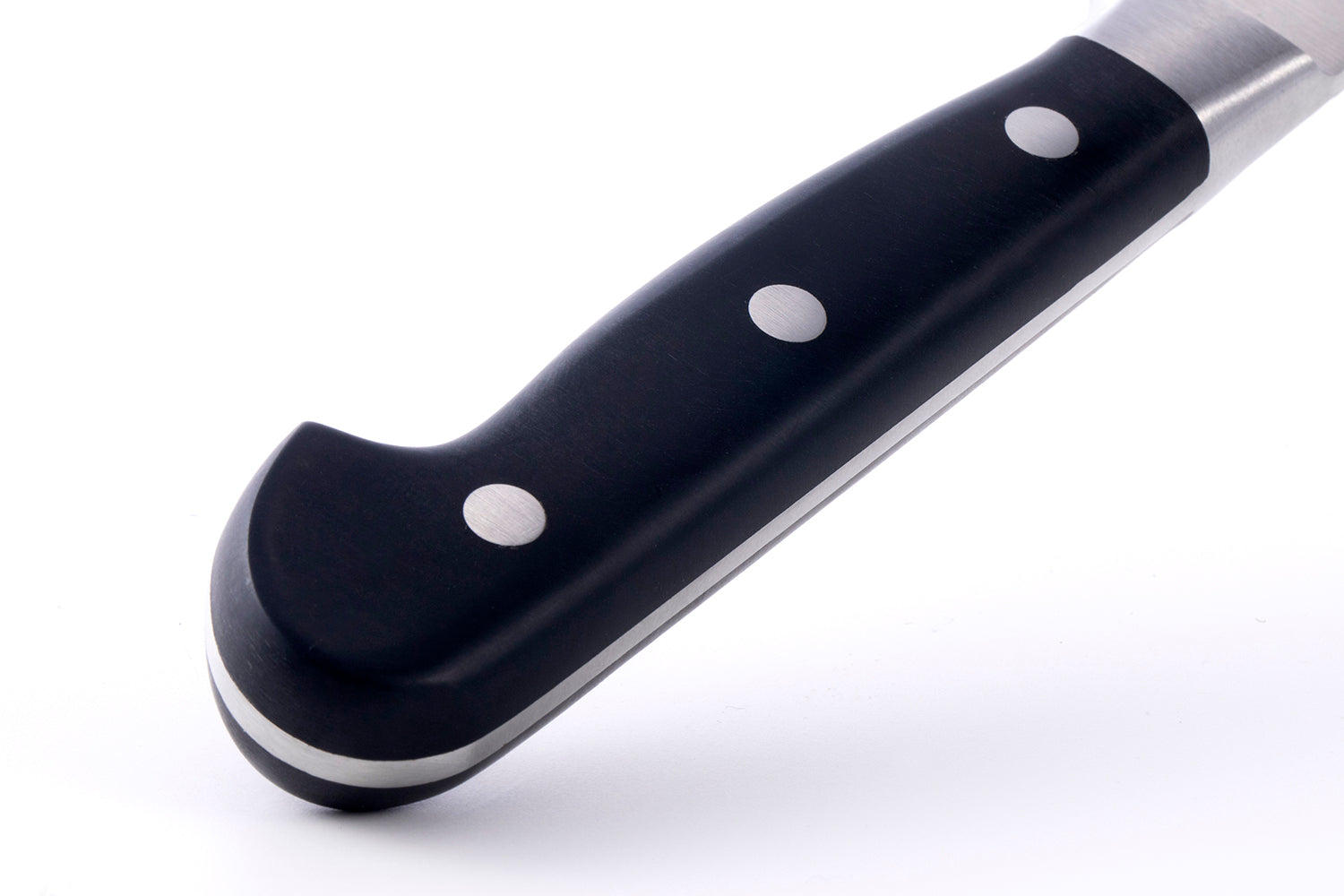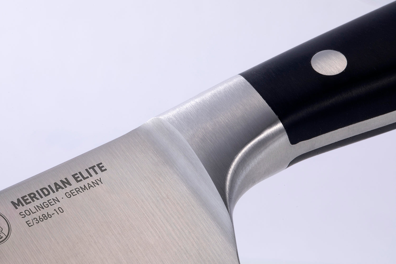 The Messermeister Meridian Elite Chefs Knife is the workhorse in every kitchen. You'll gravitate towards this knife and find yourself using it for 90% of all your cutting tasks. It has an industrial strength polyoxymethylene or POM handle. The hand forged blade has been ground down to a thin profile to create a razor sharp edge. You can chop, slice, dice and mince your way through extended cutting tasks without fatigue.