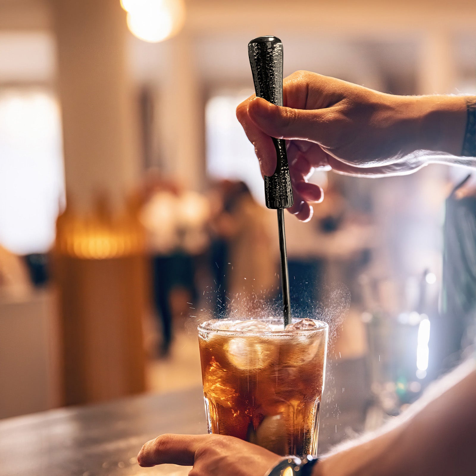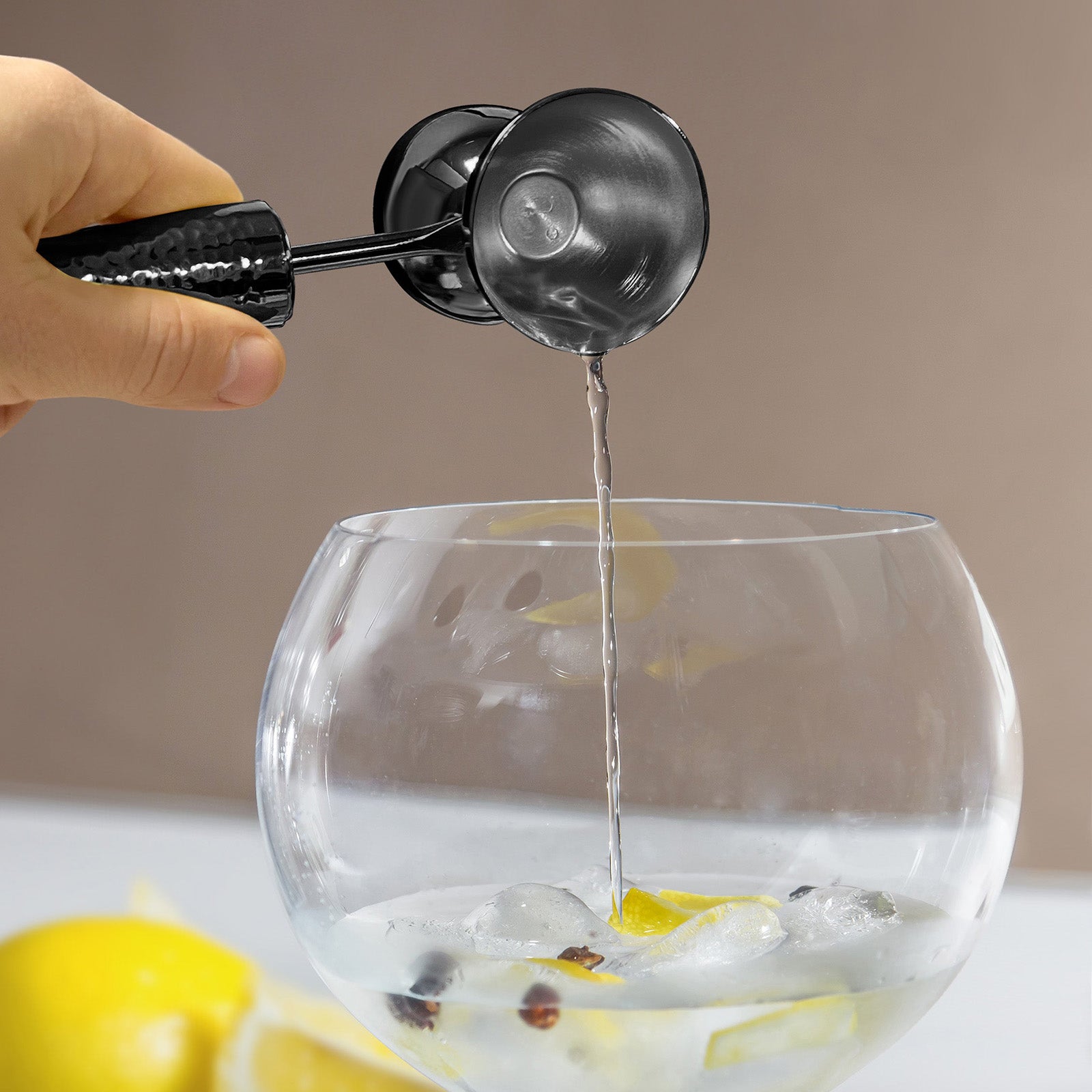 Elevate your home bar with our exquisite Hammered Bar Tool Set. Crafted for both style and functionality, each tool features hammered mirror finish handles, ensuring a luxurious feel while maintaining strength and durability. This comprehensive set includes four essential bar tools: a bottle opener, hawthorne strainer, double jigger, and bar spoon. Completing the ensemble is a beautifully handmade solid wood stand, offering both organization and elegant display. Upgrade your mixology game with our Hammered Bar Tool Set – where sophistication meets practicality in every cocktail creation.