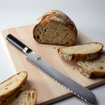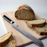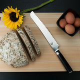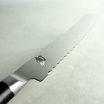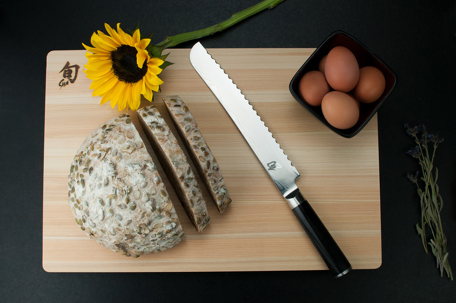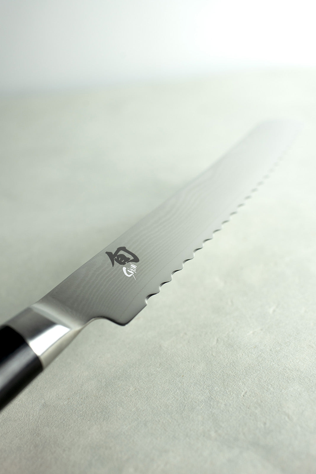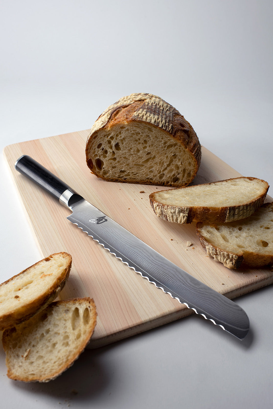 Whether your bread is delicately tender or wonderfully crusty, the Shun Classic Bread knife, with its wide, low-frequency serrations, will do a much better job of slicing any type of bread than a straight-edged knife. Gently saw back and forth to cut off the perfect slice of bread with nary an unsightly rip or tear.