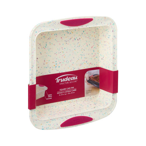 Trudeau Structure Silicone 8" x 8" Square Cake Pan, Confetti/Fuchsia