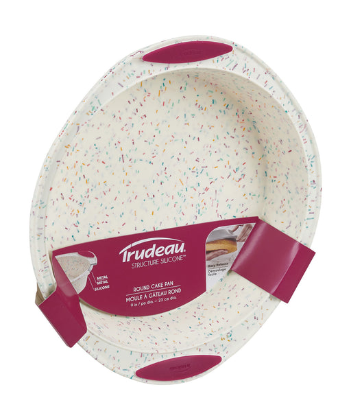 Create perfect 9" round cakes with the Trudeau Confetti Structure Silicone Round Cake Pan. Made from silicone, the pan cooks evenly and with easy release. The integrated steel structure provides secure handling. The pan is oven safe, microwave safe and freezer safe. It is also easy to wash in the dishwasher. Whether you're preparing a simple round cake or a cake with many layers, your creation will be a masterpiece with this pan!