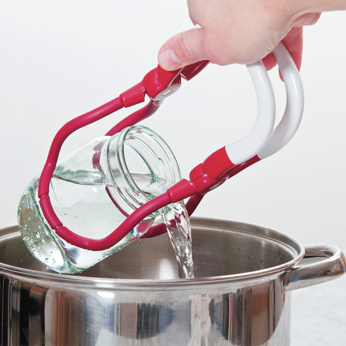 The Progressive one-handed jar lifter features textured non-slip gripper edges, allowing for a secure grip that makes it easier to remove hot, wet jars safely from boiling water. The design of the curved handles makes for a comfortable grip. And, this jar lifter is spring-loaded for easy one-handed canning operation.