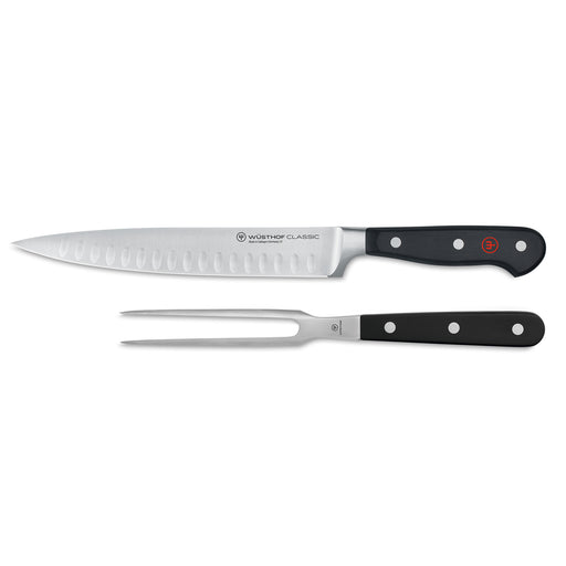 Wusthof Classic 2 Piece Carving Knife & Fork Set Hollow Edge