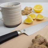 The Shun Sora 6-in. Chef's Knife is particularly lightweight and highly maneuverable. Of course, like all chef's knives, it is an all-purpose blade ideal for a wide variety of cutting tasks‚ including slicing and dicing small to medium-sized fruits, vegetables, and other foods. The Shun Sora 6-in. Chef's Knife's Asian-style blade is light and agile. With its curved belly, this Chef's knife can also be gently "rocked" through fresh herbs or spices to produce a very fine mince. What's more, with Sora, you get handcrafted Japanese quality at an amazing price.
