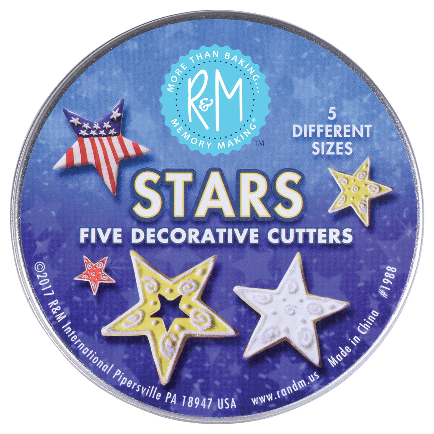 R&M International 5 Piece Star Shape Cookie Cutter Set with Storage Tin