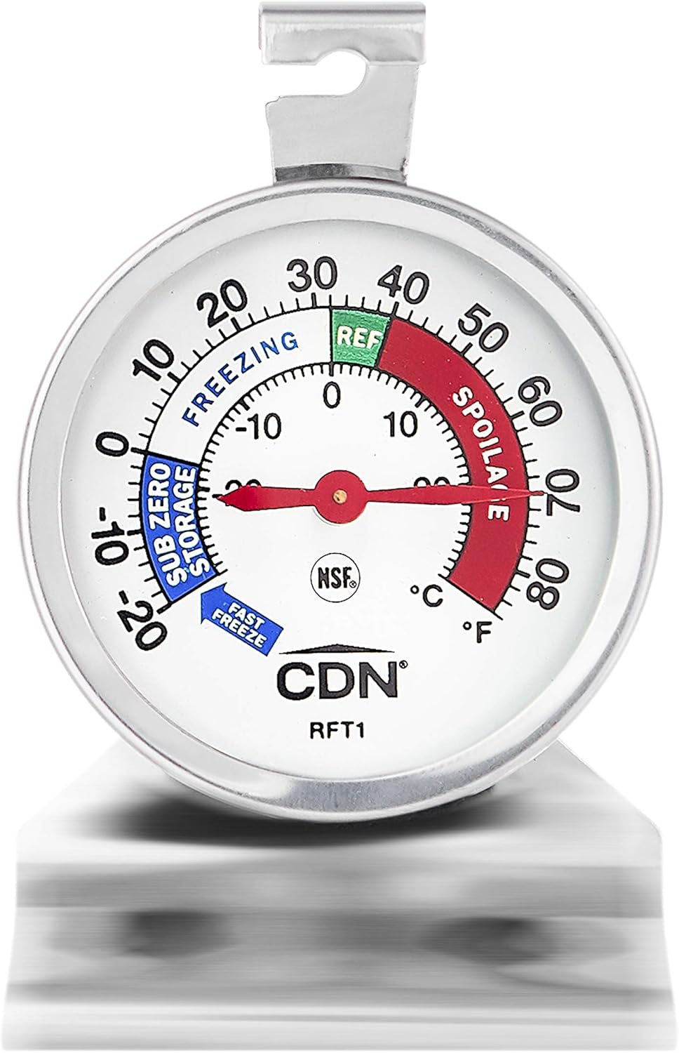Food will not keep as well, or for as long if it's not kept at the proper temperature. The RFT1 Heavy Duty Refrigerator/Freezer Thermometer is designed to measure refrigerator and freezer temperatures reliably and accurately. Use it to make sure that your refrigerator and freezer are kept at the proper temperature for proper food storage and energy conservation. NSF approved - approved for use in commercial kitchens.