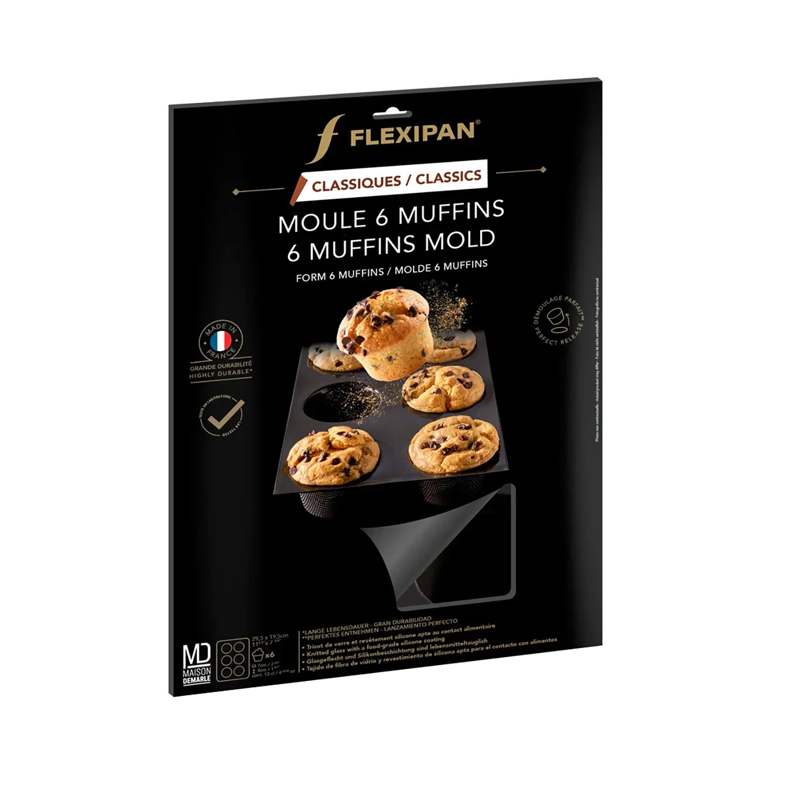 The Flexipan® 6 Muffin Mold is a versatile and durable baking tool perfect for creating a variety of single-serving recipes, whether sweet or savory. With a capacity of 4.4 fl oz per mold, it produces balanced portions ideal for muffins, mini cheesecakes, and more. This French-made mold is crafted from a unique combination of silicone and glass knit, providing even heat distribution and a non-stick surface that doesn’t require butter or oil, ensuring easy release. Designed to withstand up to 3,000 uses and safe for temperatures from -40°C to 240°C, it’s suitable for use in the oven, refrigerator, and freezer. Hand wash with non-abrasive sponges is recommended for optimal longevity.