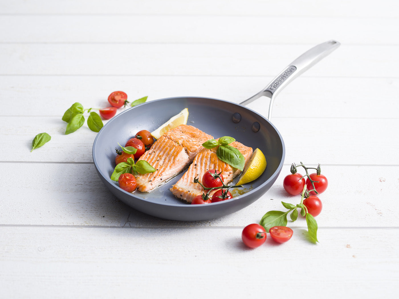 The GreenPan Paris Pro Ceramic Non-Stick 10" Open Fry pan is the perfect mix of class and convenience. Paris Pro is made of durable hard anodized aluminum for even heat conduction and complete with a matte dishwasher safe coating. Eye catching ergonomic stainless steel handles are riveted for a strong hold, allowing for oven use. Each piece is coated with Thermolon Minerals healthy ceramic non-stick, now metal utensil safe, for an extra durable, healthy cooking surface for every meal.