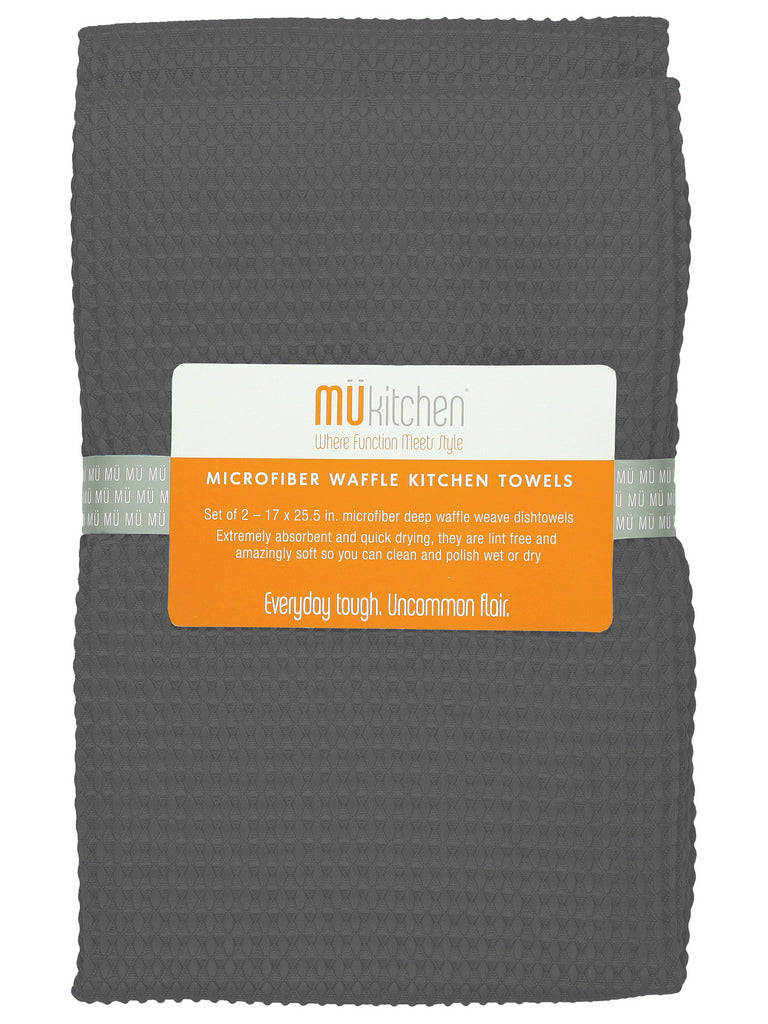 MU Kitchen 17-Inch x 25-Inch Waffle Microfiber Dishtowel, Set Of 2