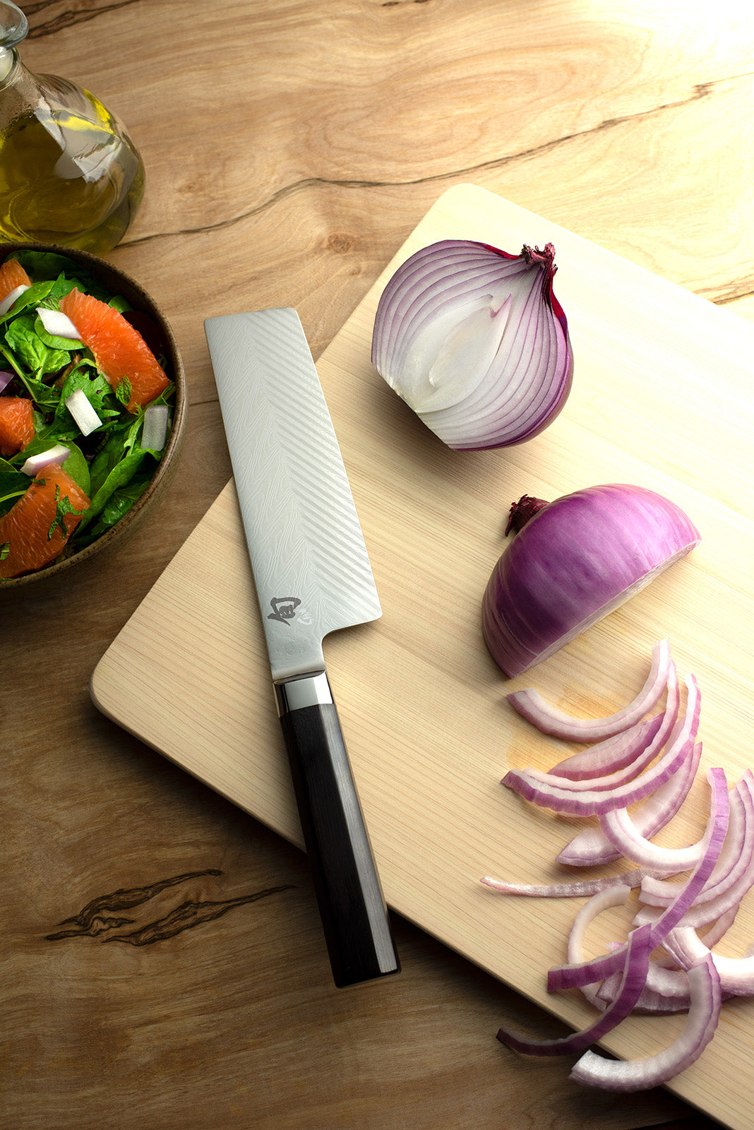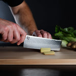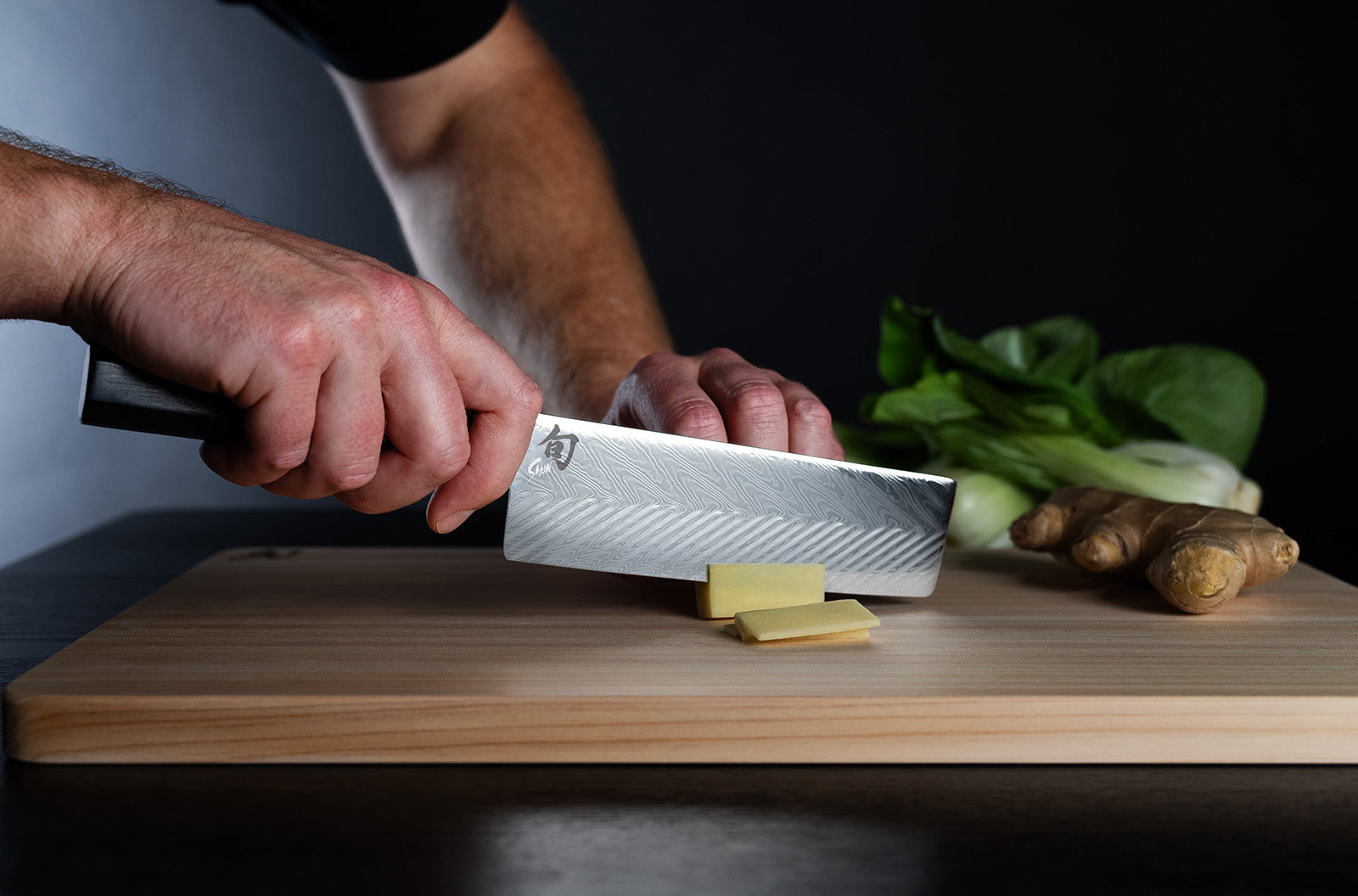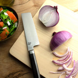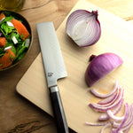A nakiri is a Japanese-style vegetable knife. The blade shape is both graceful and practical. It is a favorite with professional chefs and home cooks around the world. The nakiri's blunt tip makes the knife safer to use in the kitchen. At the same time, you can easily process foods with the blade's abundant slicing and dicing capabilities. Simply use a push cut by moving the knife down and forward while keeping the edge parallel to the cutting surface. The beautiful and versatile Dual Core Nakiri is a must-have knife, not only for plant-based cooking, but for a full range of other cuisines as well.