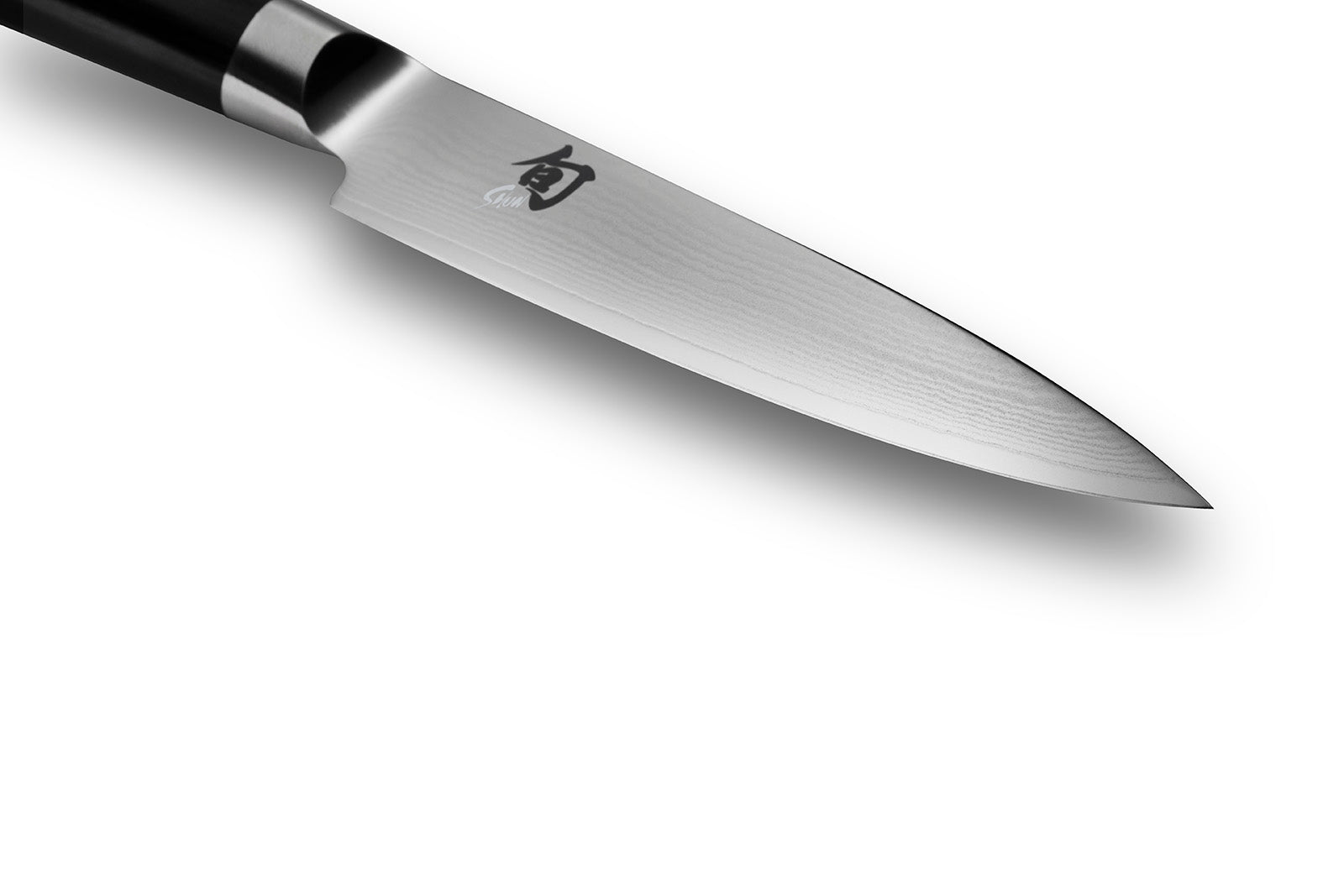 The Shun Classic 4 inch Paring knife is a kitchen essential. In a way, you can think of it as the mini version of the Chef's knife because, like the Chef's knife, the Paring knife is quite versatile. Its compact size makes it ideal for peeling, coring, trimming, decorating, and other detail work. Generally, you'll use this knife in your hand rather than against a cutting board, though paring knives can also be used for chopping small foods, such as garlic cloves.