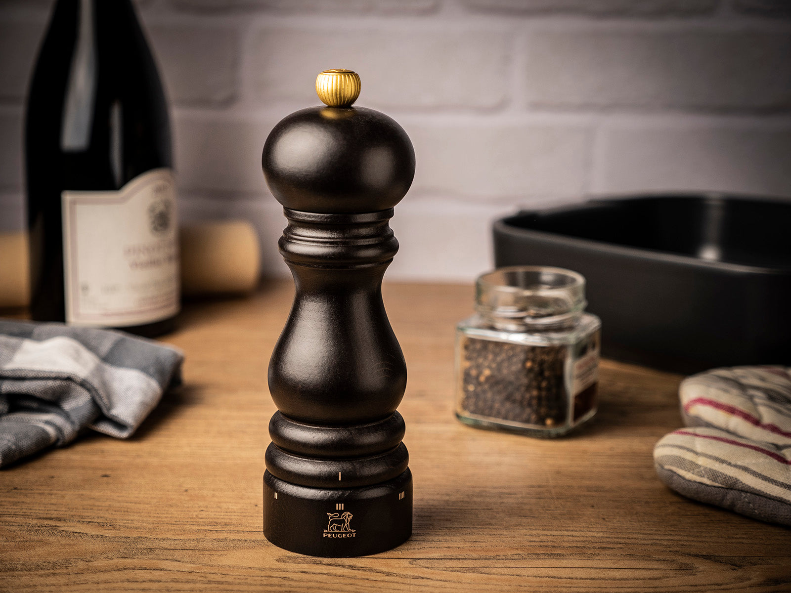 The Peugeot Paris Pepper Mill in Chocolate is treated with 5 coats of lacquer, and features a brilliant finish to a timeless design, and the Peugeot grind mechanism includes a lifetime warranty.