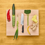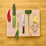 What a Chef's knife is for European kitchens, the Santoku is for Japan and the whole of Asia: so versatile in shape, weight and edge that it can be used for mincing and chopping herbs, vegetables and fruit as well as for preparing fish and meat. The sharp blade of a Santoku allows anything from regular to wafer-thin cuts - it is therefore now indispensable in kitchens all around the world.
