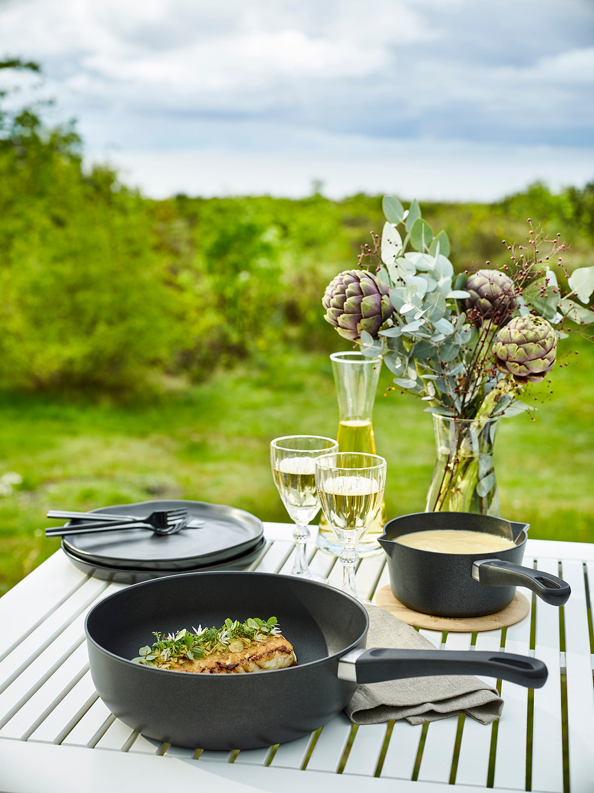 Hand-cast in Denmark from 100% recycled aluminum, this saucepan ensures even heat distribution and long-lasting reliability. The advanced Stratanium nonstick coating provides effortless food release, easy cleanup, and resistance to metal utensils. The tempered glass lid lets you monitor cooking progress without lifting, while the ergonomic handle stays cool on the stovetop. With oven-safe construction, this saucepan transitions seamlessly from stovetop to oven for added flexibility.