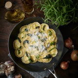 The Scanpan CTX 12.75-Inch Sauté Pan with Lid is built for big batches and bold flavors. Made in Denmark, this generously sized pan features a ceramic-reinforced nonstick interior for smooth food release and a brushed stainless steel exterior that looks as good as it performs. Its wide cooking surface and deep sides make it perfect for one-pan meals, sautéing vegetables, or simmering sauces. The included tempered glass lid helps retain moisture while monitoring your food. Compatible with all stovetops—including induction—this large nonstick sauté pan with lid is oven safe up to 500°F, offering excellent flexibility for modern kitchens.