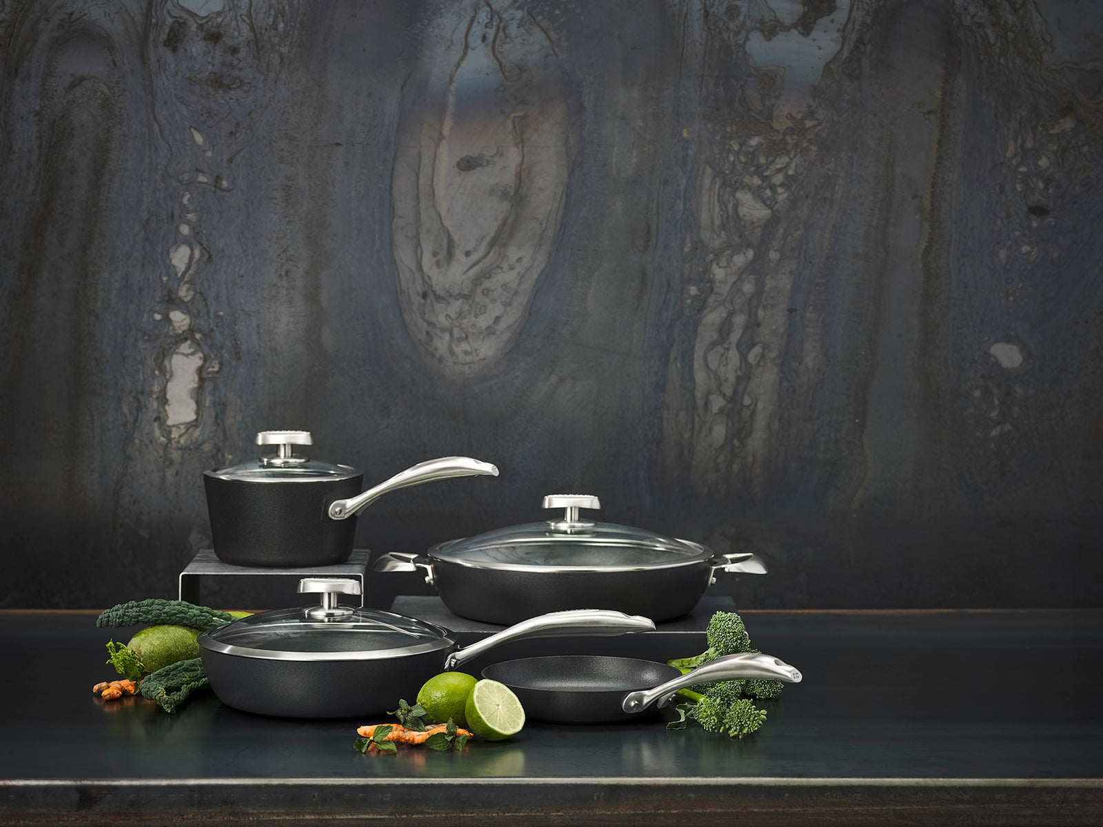 Bring professional quality and modern design to your kitchen with the Scanpan Pro IQ 10.25 Inch Covered Sauté Pan (2.75 Quart). Made in Denmark, this versatile pan combines heavy-duty recycled aluminum construction with Scanpan’s revolutionary Stratanium nonstick surface for effortless cooking and exceptional durability. The tall sides and wide base are ideal for browning, sautéing, simmering, and one-pan meals. A stainless steel handle stays cool on the stovetop, and the tempered glass lid helps you monitor food without losing heat. Oven safe up to 500°F and compatible with all cooktops, including induction, it’s built for everyday performance and professional results.