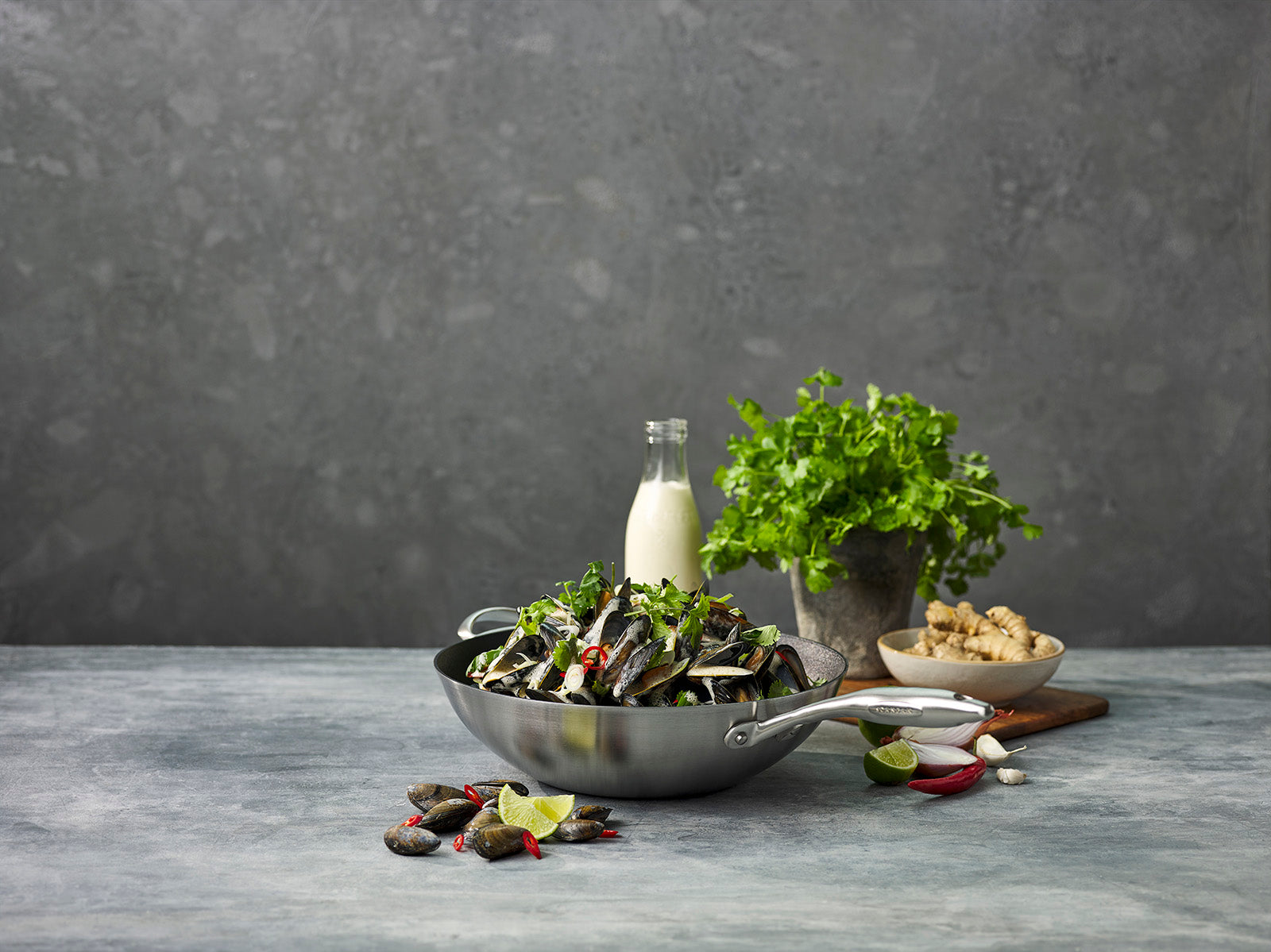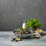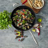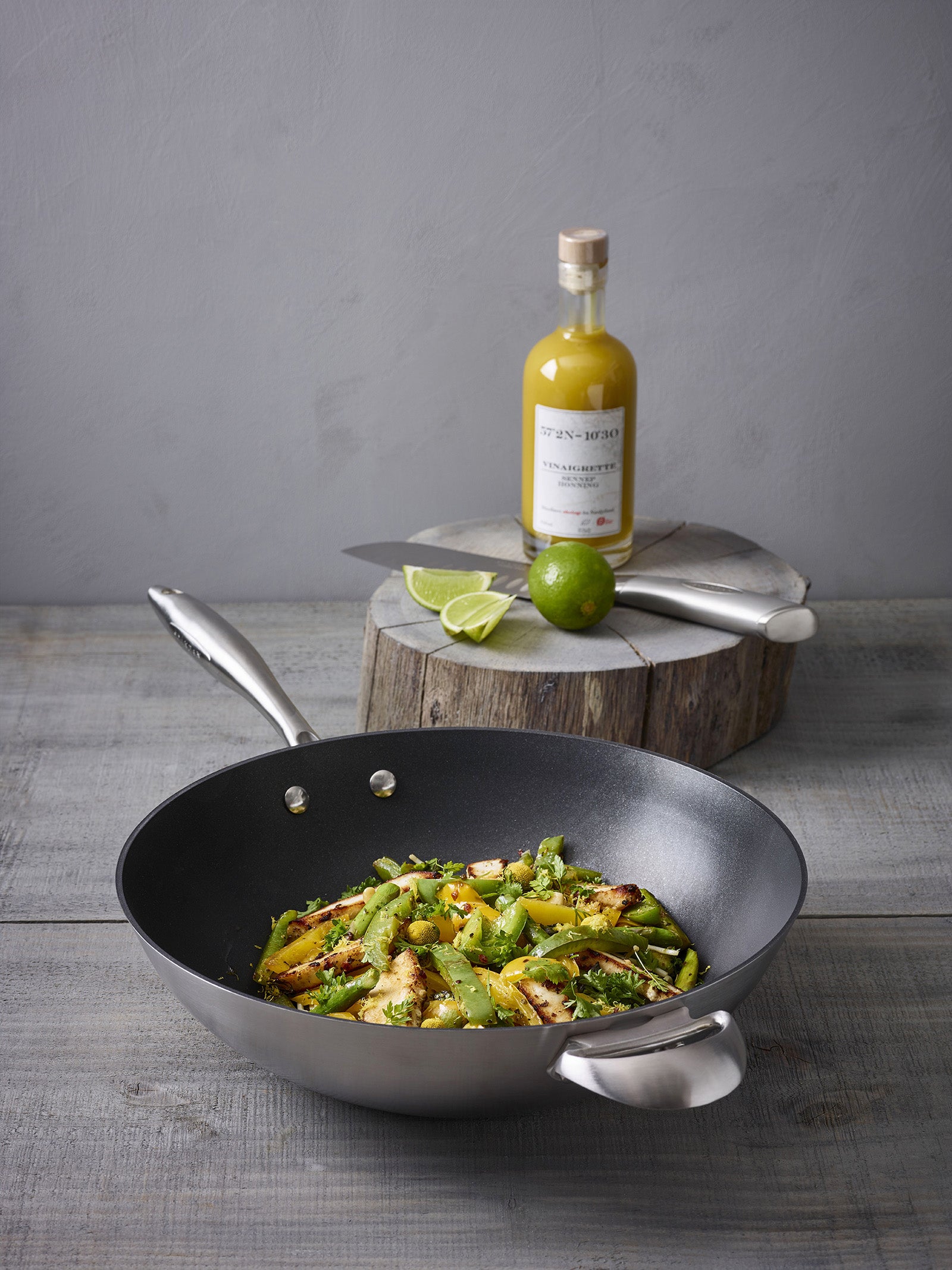 The Scanpan CTX 12.75-Inch Wok is engineered for high-heat performance and effortless stir-frying. Crafted in Denmark, this spacious wok features a brushed stainless steel exterior and a durable nonstick interior for excellent food release and quick cleanup. The wide base and deep, sloped sides make it ideal for sautéing, tossing, and stir-frying vegetables, meats, and noodles. With multi-layer construction for even heat distribution, this induction-compatible stir-fry pan is also oven safe up to 500°F, offering ultimate versatility in the modern kitchen.