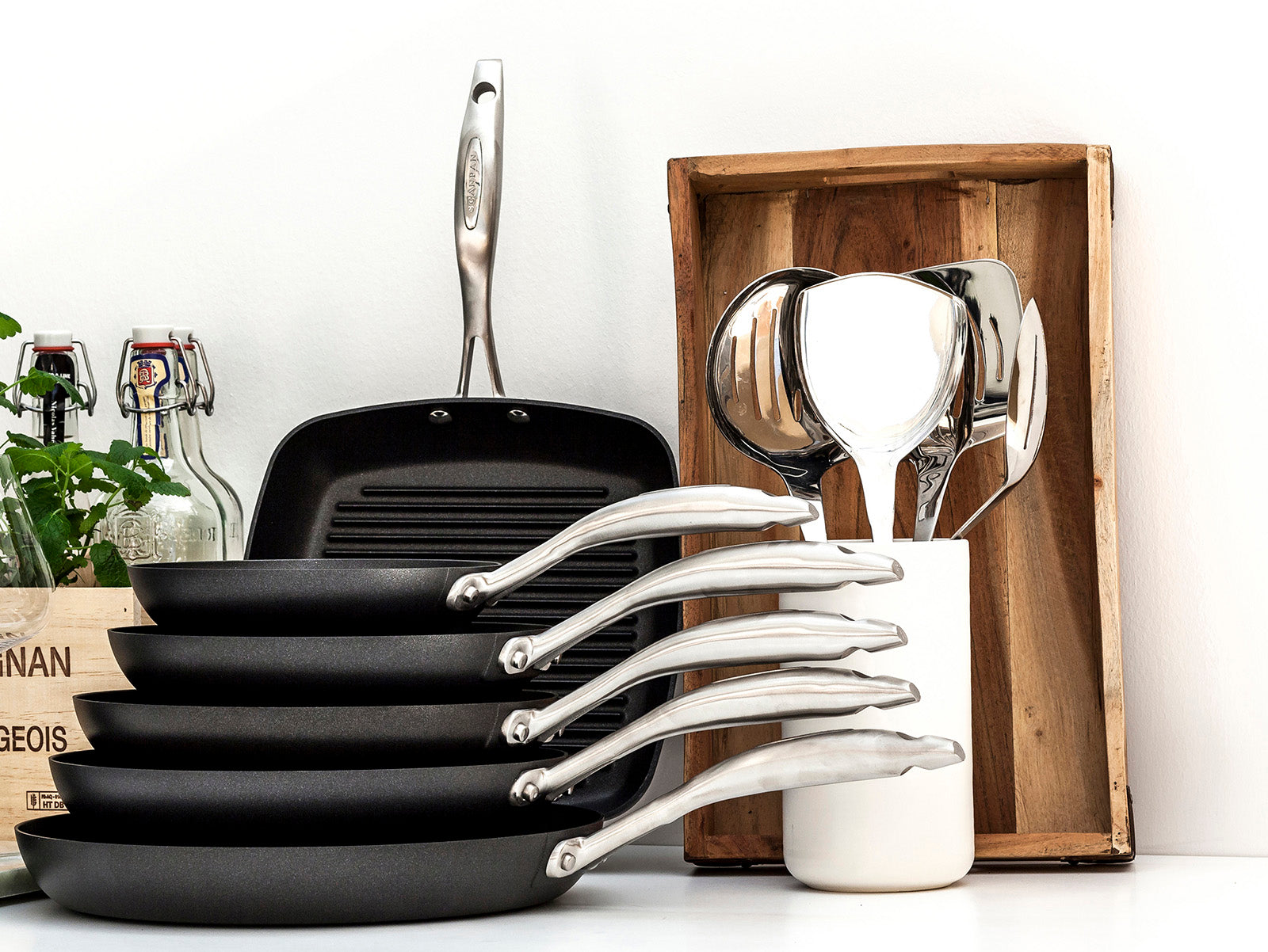 - Includes 9" and 11" fry pans for versatile everyday cooking