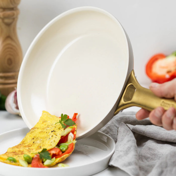 GreenPan Reserve Hard Anodized Ceramic Nonstick 3 Piece Frying Pan Set, Taupe