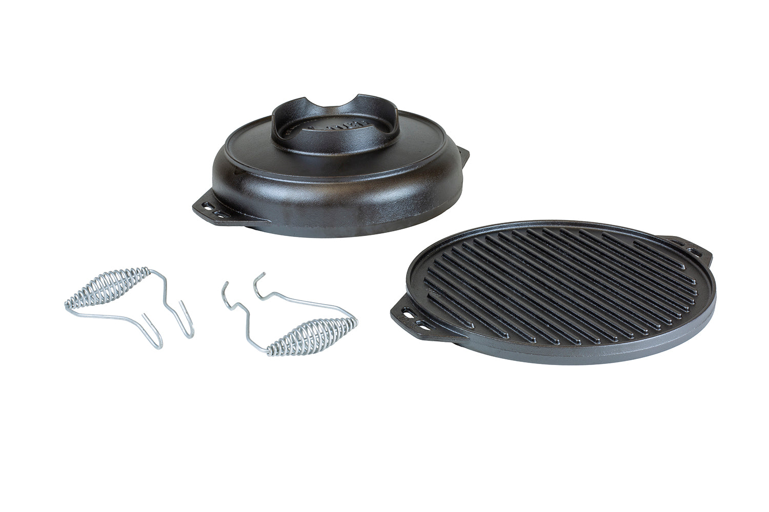 The 14 Inch Cast Iron Cook-It-All is the only outdoor cookware you need. With 5 Cooking configurations, and only 2 pieces of cast iron, the Cook-It-All brings a whole world of possibilities to your campsite cuisine. 6.8 qt capacity.