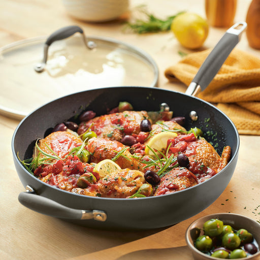Anolon Accolade Hard Anodized Nonstick Deep Frying Pan with Lid, 12-Inch, Gray