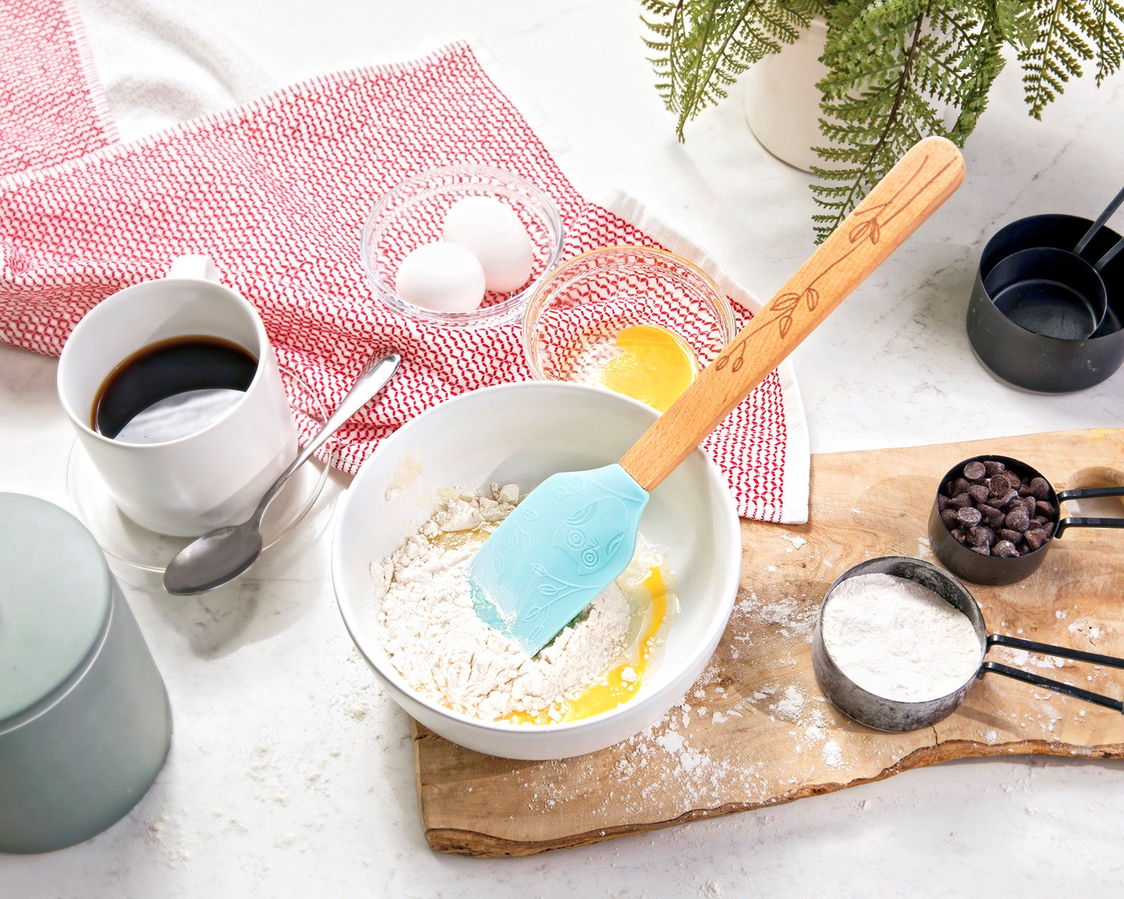 - SILICONE SPATULA & WOODEN HANDLE: This large decorative spatula is the perfect utensil for mixing, folding, serving, spreading, scraping, and flipping that any novice or professional chef can use.