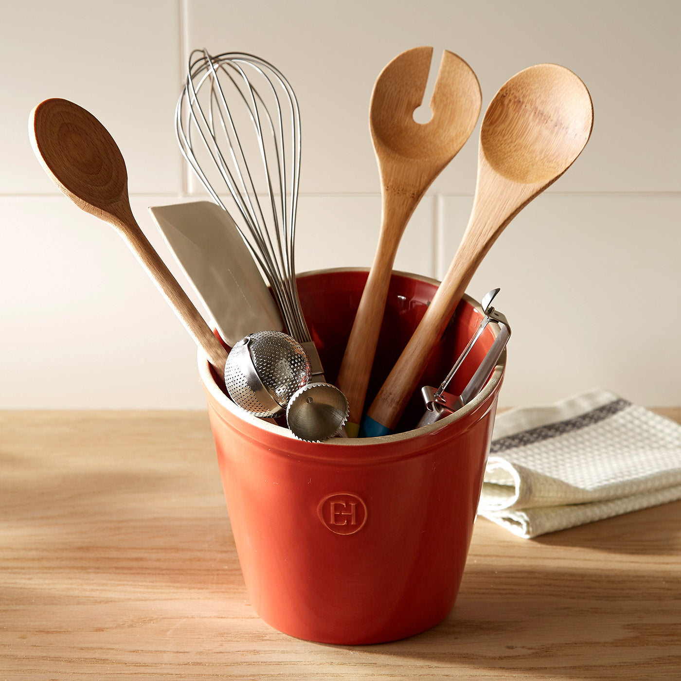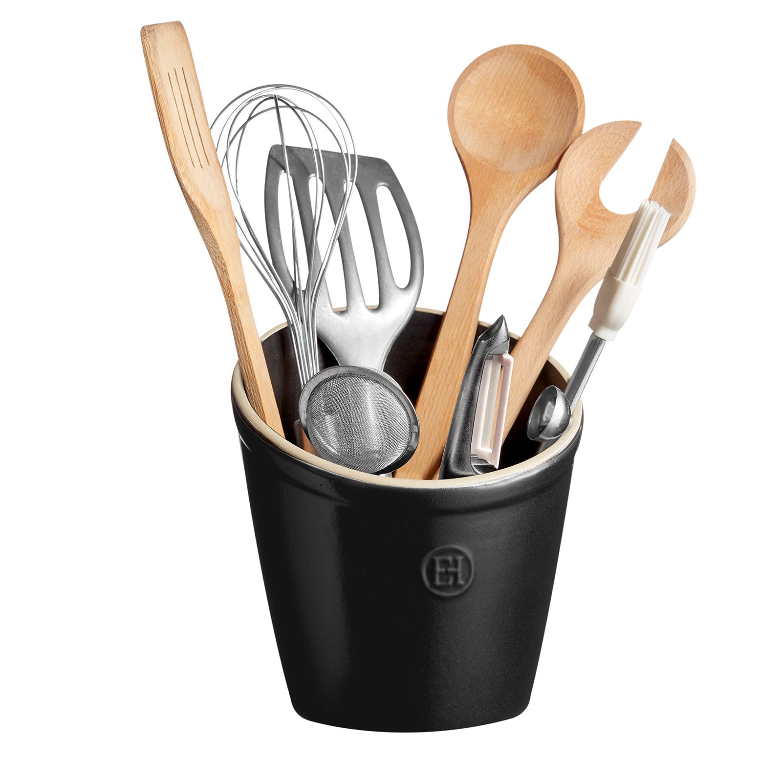 Our Utensil pot is practical and elegant. Its inclined base allows you to place small utensils at the front and large ones behind, and to find the one you want quickly and easily ! Made from HR ceramic, it is heavy and stable, even if only half full. Available in 7 different colors, it is elegant and sleek on the worktop. As with all Emile Henry products, the Utensil pot is made in France and guaranteed 10 years.