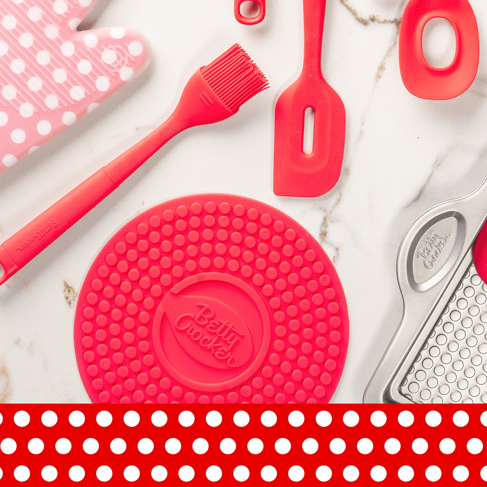 Betty Crocker Silicone 7 x 7 Inch Trivet, Red