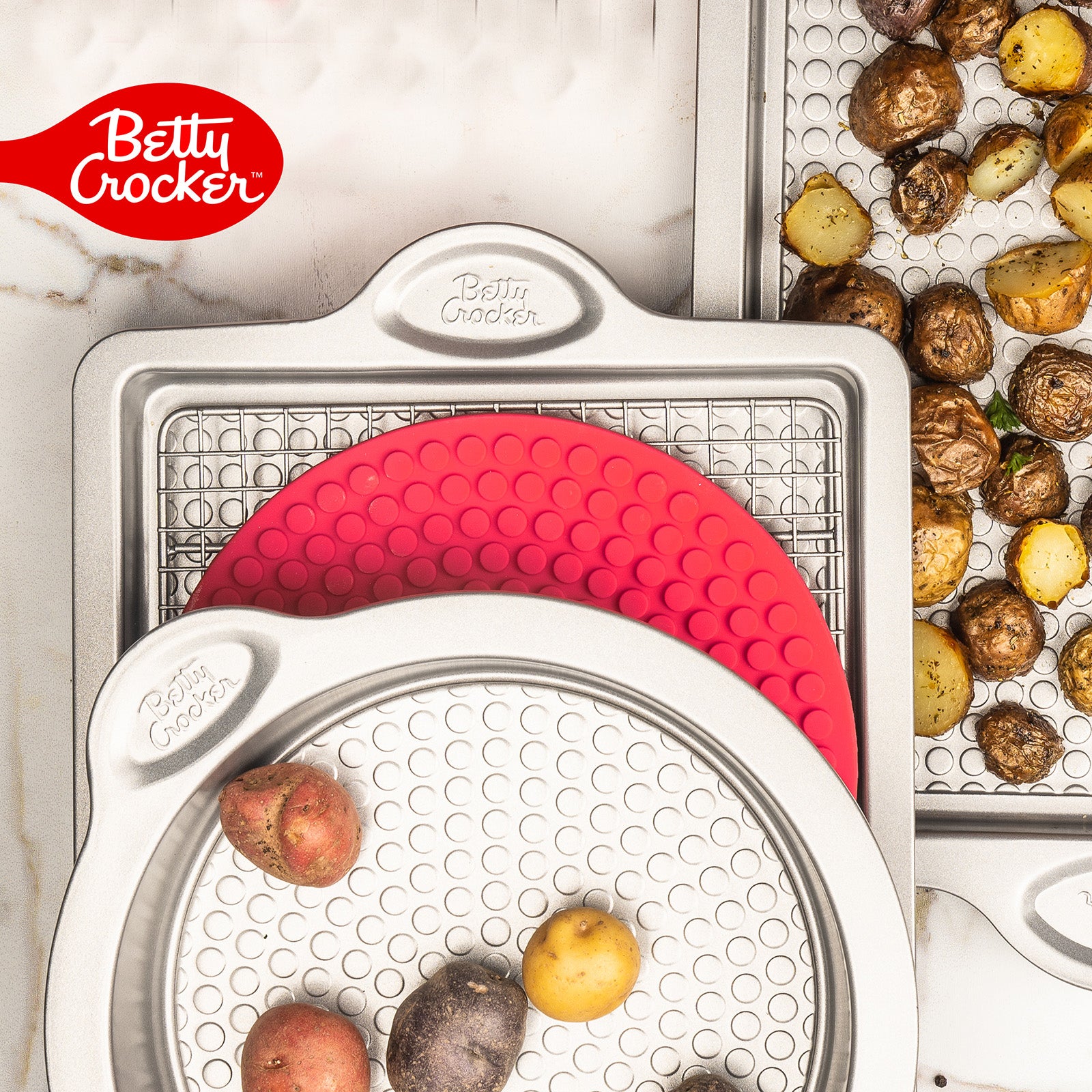 The Betty Crocker Silicone 7 x 7 Inch Trivet in bold red is a practical and stylish solution for protecting your countertops and tables. Crafted from heat-resistant, food-grade silicone, this trivet can withstand high temperatures, making it ideal for holding hot pots, pans, and dishes. Its non-slip surface provides a secure grip, preventing items from slipping or sliding, while the flexible, lightweight design allows for easy storage. Dishwasher-safe and easy to clean, this trivet is a versatile addition to any kitchen, combining convenience with classic Betty Crocker style.