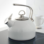 Our Classic Teakettle rocketed to popularity when introduced 30 years ago. The accolades continue for this timeless Chantal original, sure to remain a design icon and home favorite for the foreseeable future. This kettle is part of Chantal's Classic Series which includes the finest teakettles from our collection. Each design offers incomparable elegance and is designed for exceptional use. Featuring our exclusive two-tone harmonica whistle, this kettle doesn't just whistle it sings! The smooth, flat base creates maximum contact for rapid boiling, and the extra large opening allows for easy cleaning and handling. 1.8 qt. functional capacity. Enamel-on-Steel teakettles are made with magnetic carbon steel which means they will work on all cooktops INCLUDING induction.