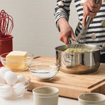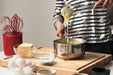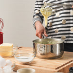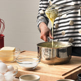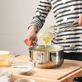 - Brushed stainless steel tube handle maximizes comfort when whisking and beating.