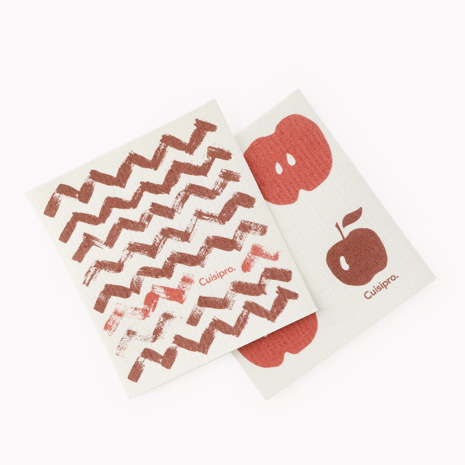 Cuisipro All Purpose Eco-Cloth Sponge Cloth, Red Zig Zag/Apple, Set of 2
