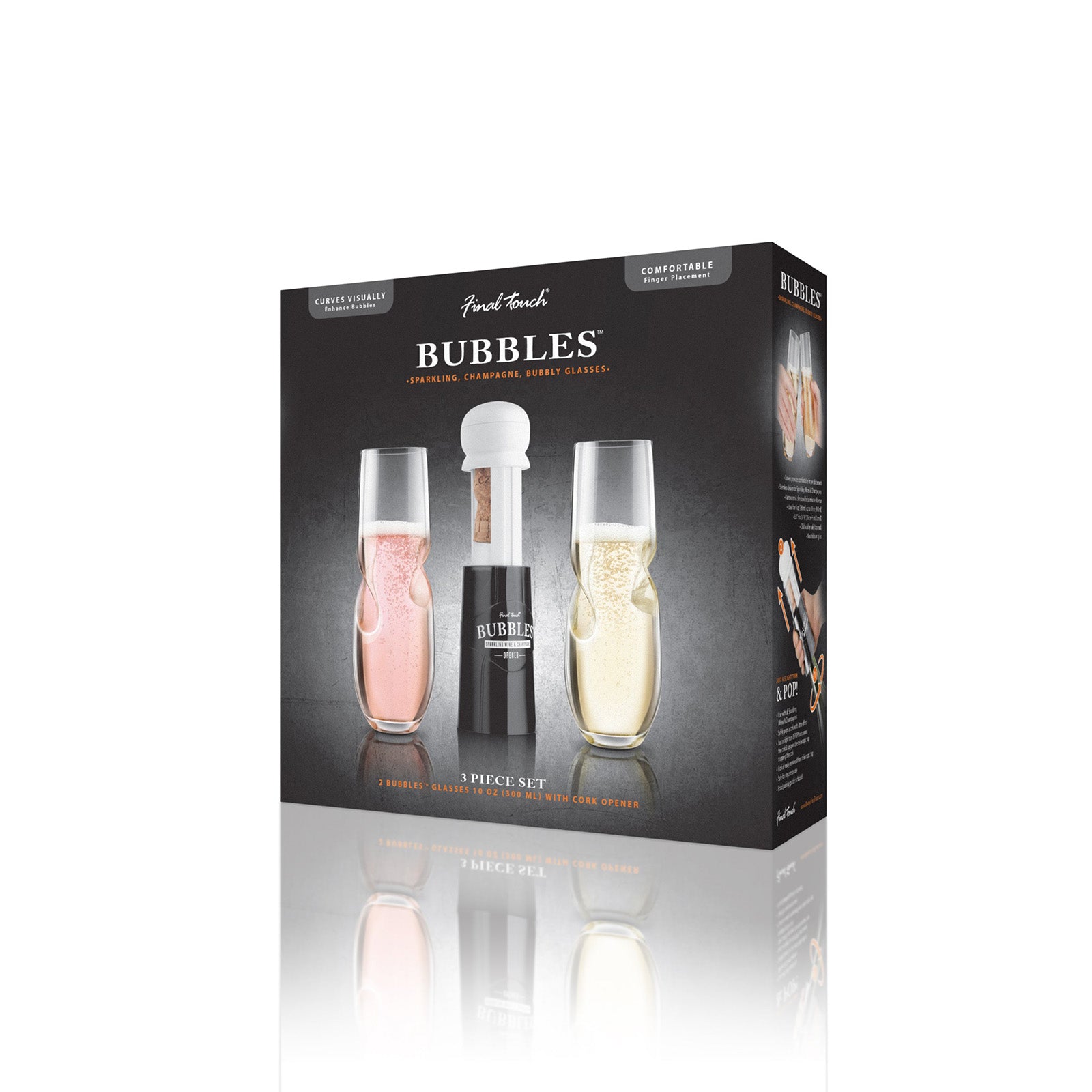 Final Touch Bubbles Sparkling, Champagne, Bubbly Glass Set with Opener - 10 oz (300 ml)