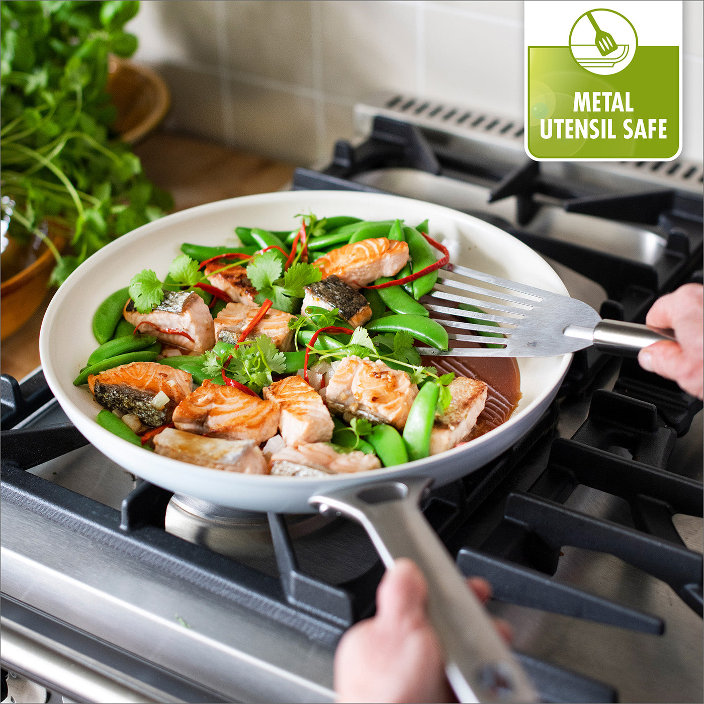 The GreenPan Padova Ceramic Non-Stick Light Blue 2 Piece Frypan Set adds a pop of color to any kitchen. Engineered for high performance, Padova is coated with Thermolon Minerals healthy ceramic non-stick, now metal utensil safe, for easy release and clean up. Constructed with a hard anodized body for even heat distribution and stainless steel handles for oven use, and complete with armored body hard anodized foundation for maximum durability.