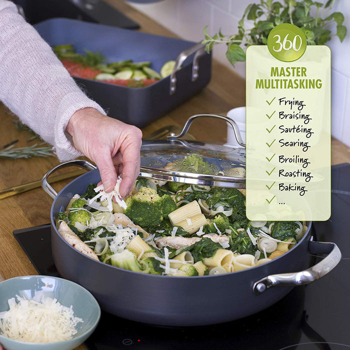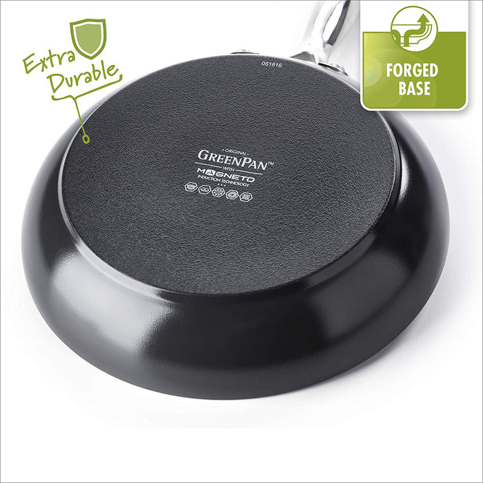 Your go-to pan, your kitchen hero - this Valencia Pro 11 frypan is a must-have for any kitchen. Safe for all stovetops thanks to its Magneto base, this pan is crafted from durable hard anodized aluminum and finished with GreenPans healthy ceramic nonstick coating.