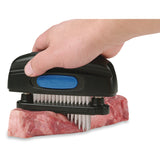 The Jaccard Meat Maximizer 45-Blade Meat Tenderizer with Stainless Steel Columns and Removable Blade Cartridge is used in great kitchens around the world. The patented, removable blade cartridge makes clean-up a snap. So easy to clean the product has earned NSF certification the only hand-held tenderizer in the industry with such recognition. 45 Razor sharp knife blades cut through connective tissues that can make meat tough. Easy to use, this age old technique known as jaccarding makes faster, more flavorful, more tender meat! Helps to retain your meat's natural juices.