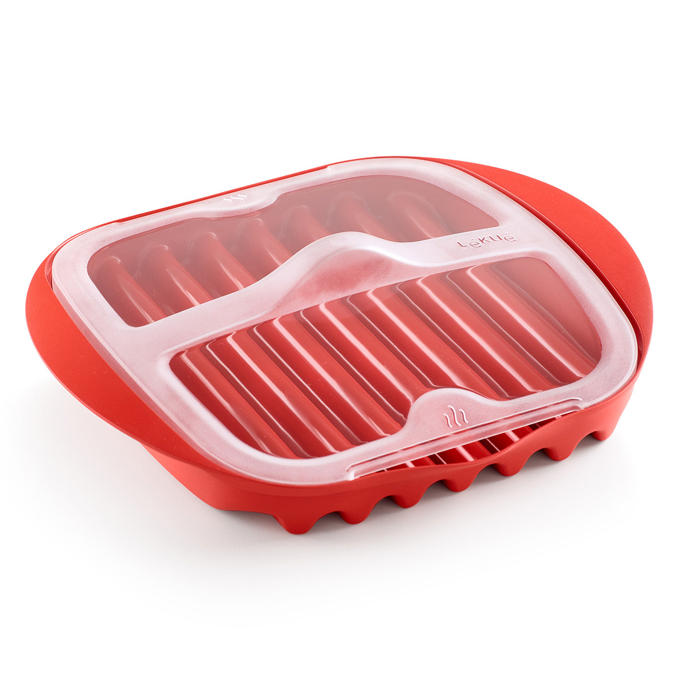 Lekue Microwave Bacon Maker & Cooker with Lid, Red
