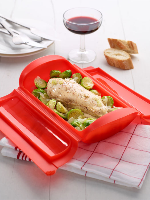 Lekue Steam Case for 1-2 People, Microwave and Oven Safe, Red