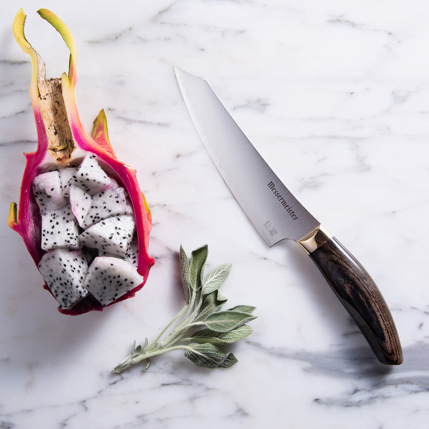 You will find yourself using the Messermeister Kawashima 6 Utility Knife for all of your go-to tasks in the kitchen. With a fine edge, this traditional style utility knife is one of the most frequently used knives in the kitchen. A favorite for prepping and peeling produce as well as slicing meats and cheeses.