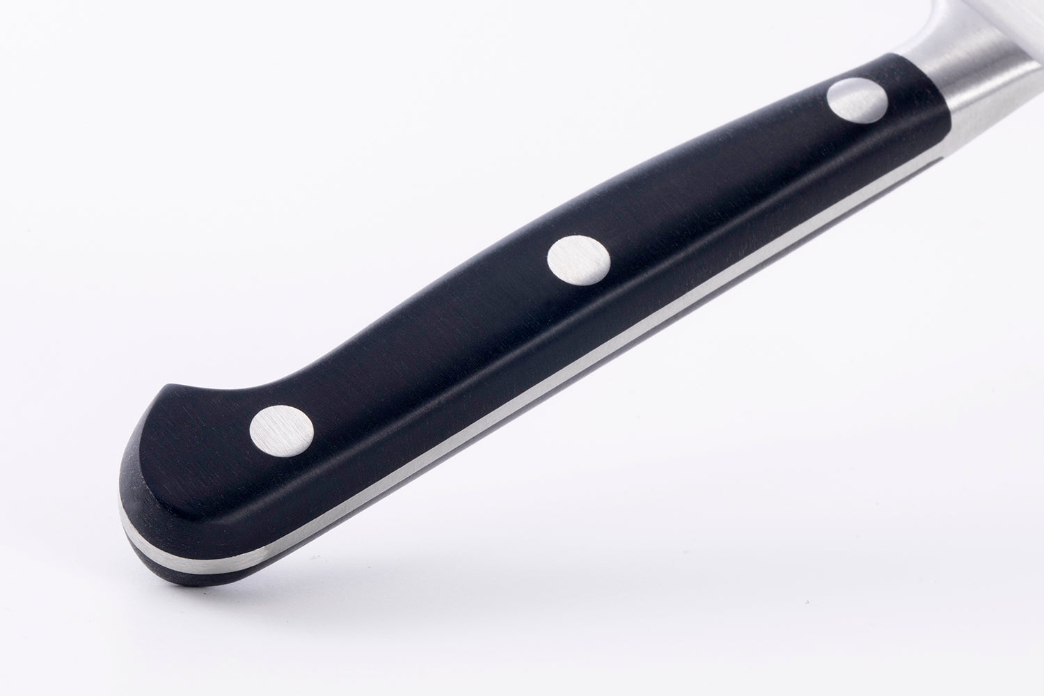 - The bolsterless heel simplifies all cutting, sharpening and honing tasks, making use of the entire blade from heel to tip.
