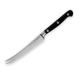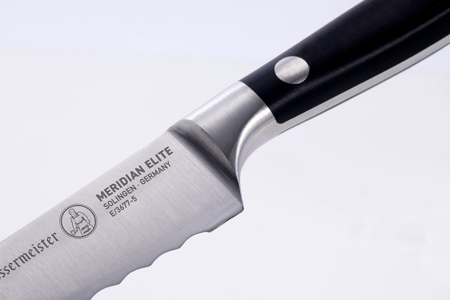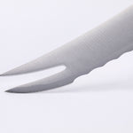 The Messermeister Meridian Elite 5 Scalloped Slicing Knife is your go-to when slicing soft skinned produce, charcuterie or baguette. This multi-functional forged knife features our Elite edge, a compact blade, and a pronged tip to serve individual cut pieces and to move from cutting board to serving plate.
