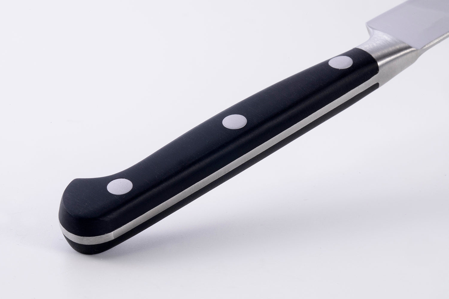 - The bolsterless heel simplifies all cutting, sharpening and honing tasks, making use of the entire blade from heel to tip.