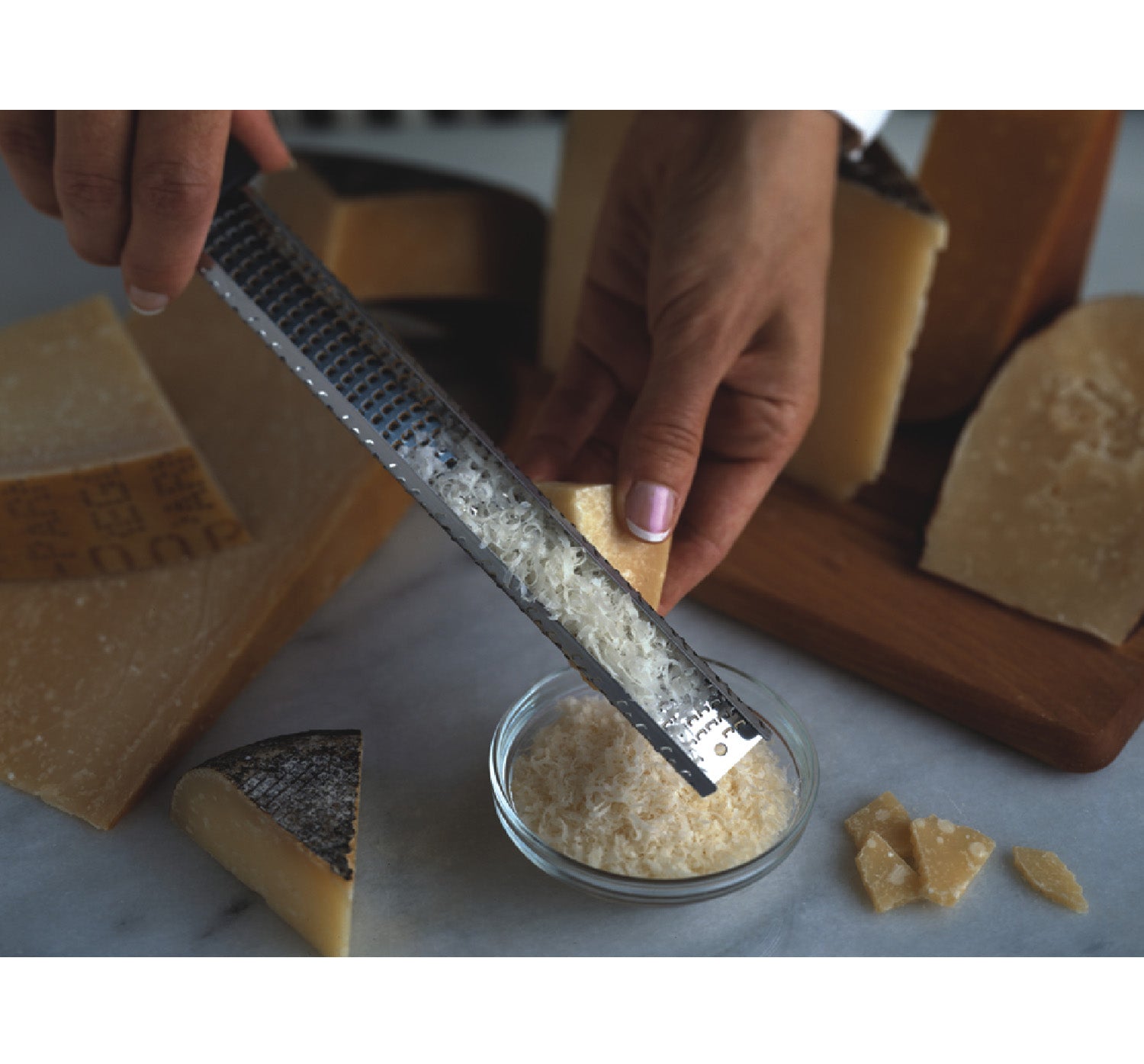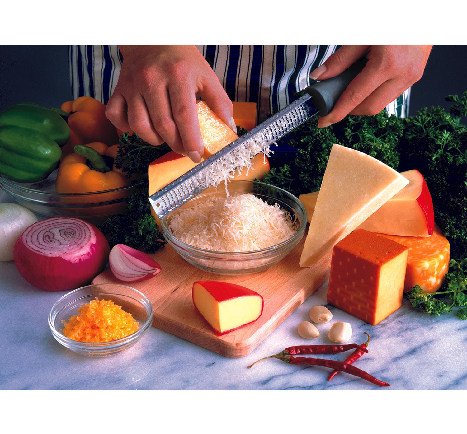 Originally a woodworking tool, this best selling Microplane Classic Zester/Grater grates even the hardest Parmesan Reggiano as well as other hard cheeses into fine lacy wisps. Ideal for topping your favorite spaghetti and meatballs or a Caesar salad. It's also wonderful for effortless citrus zesting to add natural flavors to a lemon creme brulee or a basic vinaigrette.