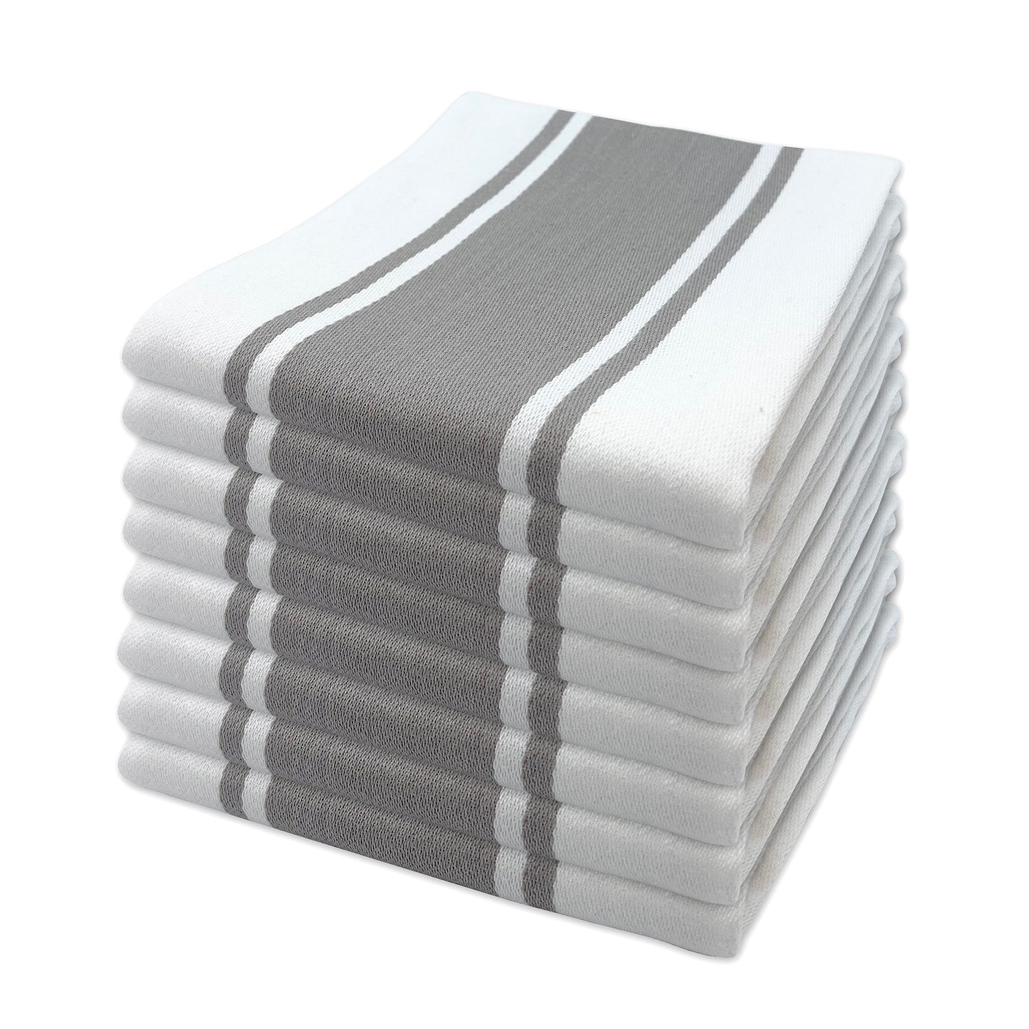 MU Kitchen Set of 8 Classic Stripe Cotton Kitchen Dishtowel with Hanging Loop, 20 x 30 Inch, Stainless