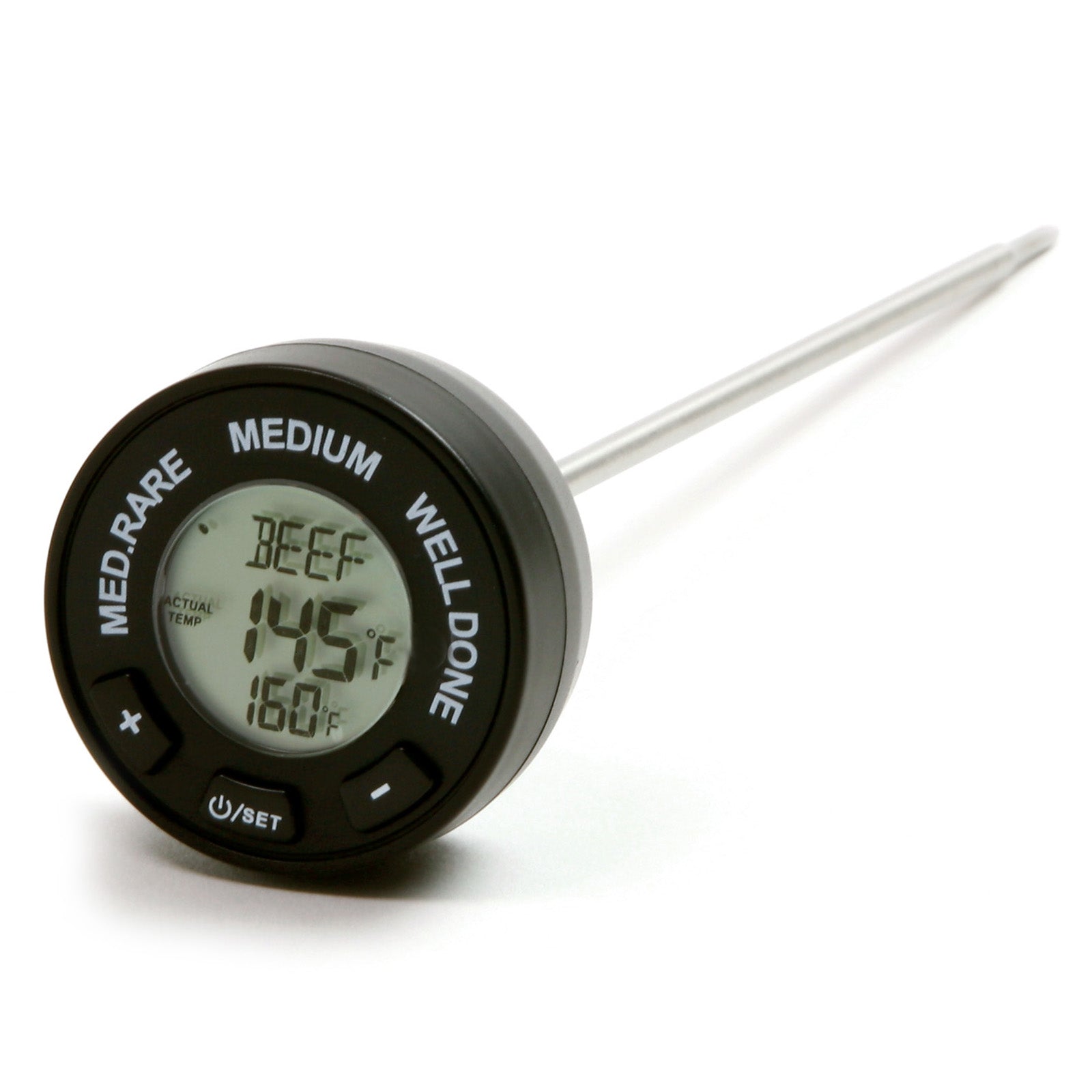 The Norpro BBQ Meat Thermometer with Digital Display delivers fast, accurate temperature readings to help you cook meats to perfection. Designed for grilling, smoking, roasting, and baking, this instant-read thermometer features a stainless steel probe and a clear digital display for easy temperature tracking. Whether you're checking brisket on the smoker or a roast in the oven, this compact and reliable thermometer ensures your food is safely and deliciously done every time.